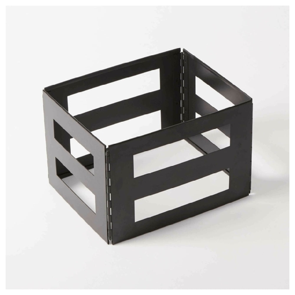The American Metalcraft KBC10 Crate is a versatile and practical storage solution, measuring 12-1/8 inches in length, 10 inches in width, and 8-1/8 inches in height, making it a convenient 1/2-size option for various storage needs. This collapsible crate is expertly crafted from iron, ensuring durability and longevity, while its black powder-coated finish adds a sleek, modern aesthetic suitable for a range of environments. The collapsible design of the KBC10 allows for easy storage and transport when not in use, making it a space-saving option for businesses with limited storage capacity. The iron construction provides a sturdy framework capable of supporting various items, catering to diverse markets such as retail display, kitchen storage, and organizational applications in both commercial and residential settings. The crate's hand-wash-only requirement highlights its artisanal quality and ensures that the finish remains pristine over time. This product is an excellent choice for those seeking a reliable and stylish storage solution that seamlessly blends functionality with design. The American Metalcraft KBC10 Crate stands out for its robust construction, compact design, and versatile application, making it a valuable addition to any space requiring efficient and aesthetically pleasing storage options.