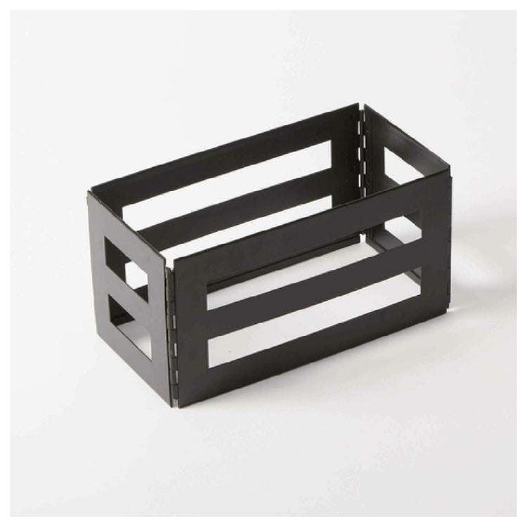 The American Metalcraft KBC12 Crate is an adaptable and compact storage solution, specifically designed for efficiency and practicality in various industry settings. Measuring 12"L x 6-1/4"W x 6-3/8"H, this 1/3-size crate is crafted from resilient iron, ensuring a robust construction that can withstand rigorous use. Its black powder-coated finish not only enhances its aesthetic appeal but also provides an additional layer of protection against wear and tear. This crate is collapsible, offering convenient storage options when not in use, thus optimizing space in busy environments. Ideal for restaurants, catering businesses, or retail displays, its sleek and modern design seamlessly fits into any professional setting. The American Metalcraft KBC12 Crate requires hand washing, maintaining its longevity and preserving its finish. This product’s blend of durability, practicality, and style makes it a valuable asset for any organization looking to enhance their operational efficiency and presentation. It caters to a wide range of market segments within the food service and retail industries, providing a versatile solution that meets diverse storage and display needs.