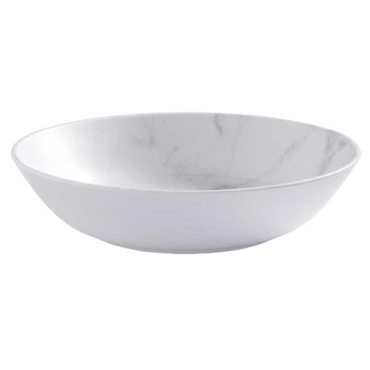 The American Metalcraft MCB36MA Bowl is a versatile dining accessory with a capacity of 36 oz., making it ideal for serving a variety of dishes in both casual and formal settings. With dimensions of 8-3/4 inches in diameter and 2 inches in height, this round bowl provides ample space for portioning salads, pastas, or desserts, catering to the needs of restaurants, caterers, and home entertainers alike. Crafted from durable melamine, it offers the elegance of porcelain with increased resistance to breakage, a significant advantage in high-traffic environments such as dining halls and outdoor events. Part of the Mix & Matte Collection, this bowl features a matte marble white finish, adding a sophisticated aesthetic that complements various table settings. The American Metalcraft MCB36MA Bowl's combination of elegant design and practicality makes it a valuable addition to the product lineup for foodservice institutions looking to enhance their presentation while maintaining functionality. Its lightweight structure aids in ease of handling, and the melamine construction offers a longer lifespan compared to traditional ceramic options. The bowl’s practical design and aesthetic appeal make it suitable for a diverse range of markets within the hospitality industry, providing a timeless yet modern touch to any dining experience.