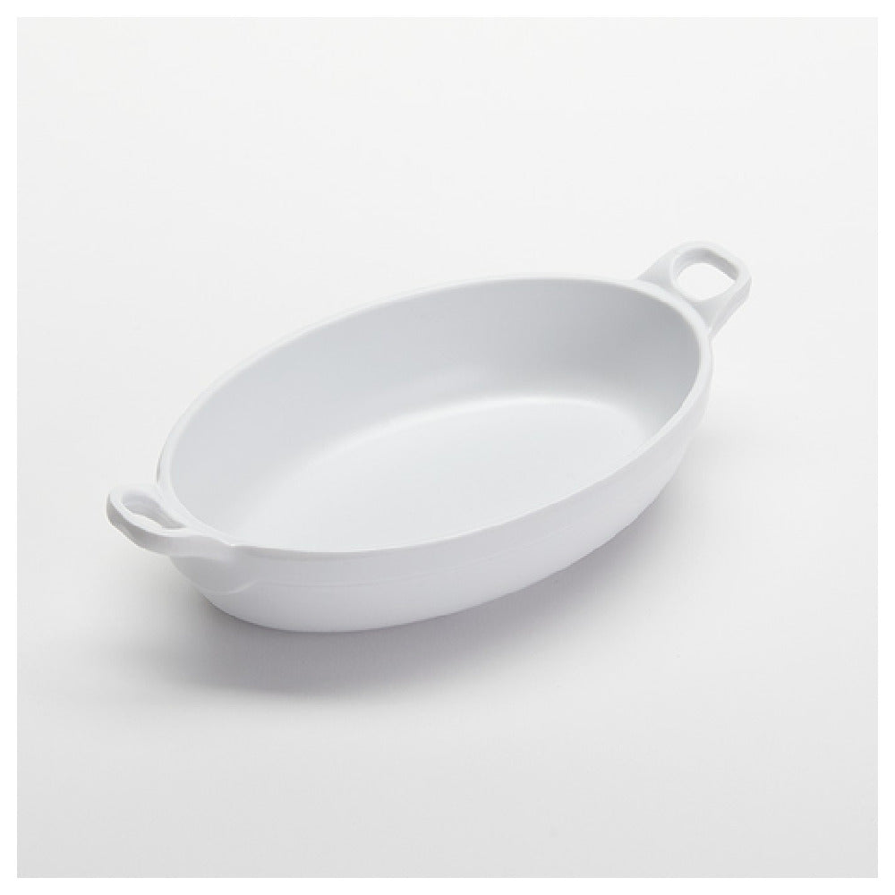 American Metalcraft, MCW61, Casserole, 5 oz., 4-3/4" L X 3" W X 1-1/4" H, 6" L (with handle), Oval, Melamine, White
