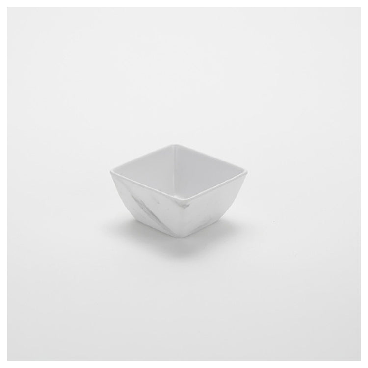 The American Metalcraft MWMSQ5 Bowl, with dimensions of 5 inches in length, 5 inches in width, and 2-7/8 inches in height, is a versatile piece with a 19-ounce capacity. Crafted from durable melamine, this bowl is part of the Naturals™ Collection and features a distinctive white marble pattern, offering an elegant aesthetic suitable for various settings. Its square shape adds a modern touch to any table presentation, making it an excellent choice for upscale dining environments, catering events, or casual eateries looking to enhance their culinary display. This bowl's melamine construction ensures it is lightweight yet robust, providing both practicality and style. The MWMSQ5's unique design is particularly appealing to restaurants, cafes, and hospitality industries that prioritize both function and visual appeal in their serving ware. Its ease of handling, combined with the stylish marble pattern, makes it a favorite for establishments aiming to create a memorable dining experience. The American Metalcraft MWMSQ5 Bowl seamlessly combines functionality with design flair, making it an indispensable part of any food service operation, where both durability and aesthetics are paramount.