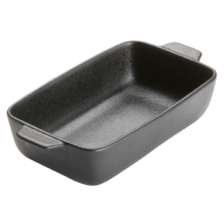 The American Metalcraft PBB9 Casserole is a versatile kitchenware item, designed primarily for culinary professionals and home chefs seeking a blend of style and functionality. This casserole dish boasts a 20 oz. capacity, perfectly sized for individual or small group servings. Its dimensions are meticulously crafted, measuring 7-1/4 inches in length, 4-1/4 inches in width, and 2 inches in height, while extending to 9-1/4 inches in length when including the handles. This makes it a convenient choice for both preparation and presentation. The dish is constructed from high-quality porcelain, ensuring durability and an elegant appearance. Its black, matte finish not only adds a contemporary aesthetic but also provides a non-reflective surface that enhances the visual appeal of the food. The rectangular shape of the casserole is ideal for a variety of dishes, from baked pastas to roasted vegetables, catering to diverse culinary needs. Designed for both functionality and style, the American Metalcraft PBB9 is a practical addition to any kitchen, offering a unique blend of durability, aesthetic appeal, and optimal size for a wide range of cooking applications in the food service industry.