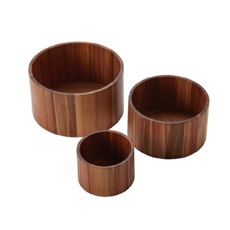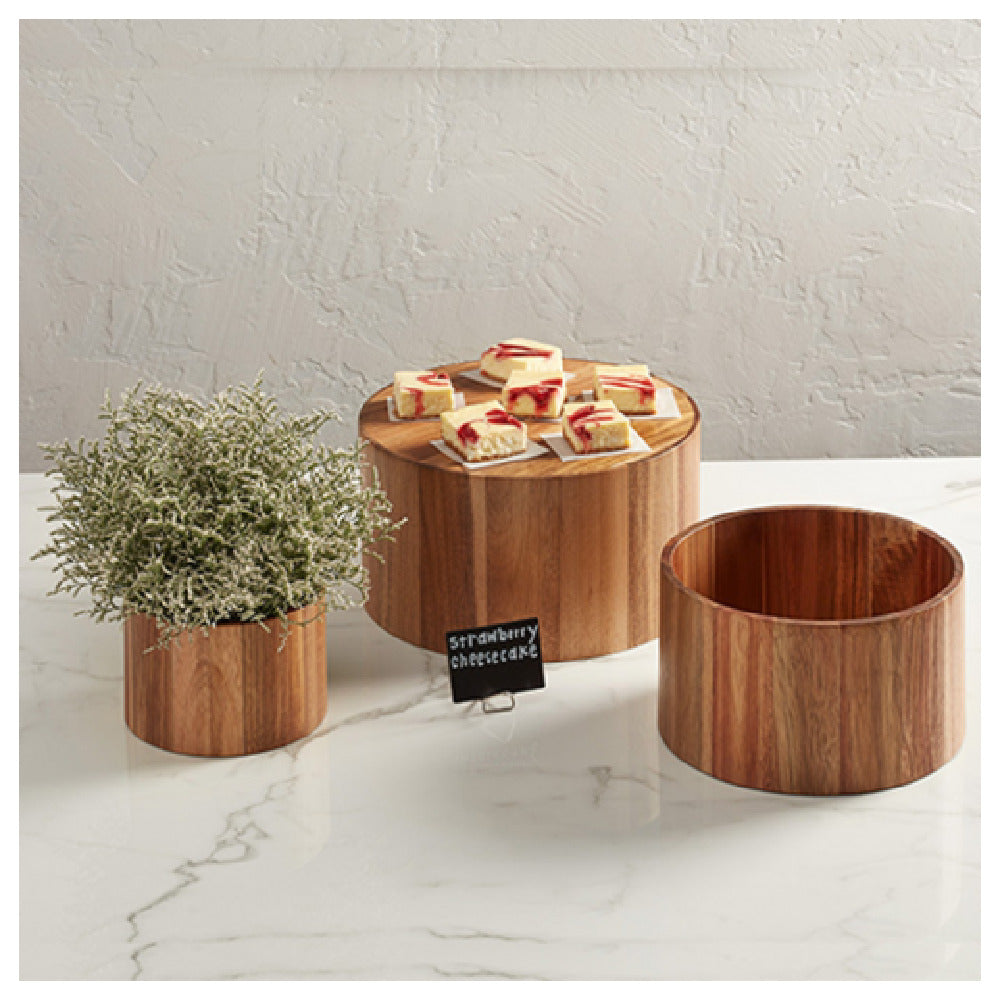 The American Metalcraft RARS3 Riser Round Acacia is a set of three meticulously crafted risers, each uniquely designed to provide aesthetic versatility and functionality in various industrial settings. Made from high-quality acacia wood, these risers are not only durable but also add a touch of natural elegance to any presentation space. The round design of each riser enhances its visual appeal, making it an ideal choice for showcasing products in retail environments, catering displays, or event settings. The set of three ensures a tiered display possibility, allowing users to create dynamic presentations with depth and dimension. This product is particularly beneficial for businesses in the hospitality industry, offering a stylish solution for food displays that seek to combine practicality with a refined appearance. The robust construction of these risers ensures long-term use, even in high-traffic areas, making them a valuable investment for any commercial operation looking to enhance its display capabilities with reliable and attractive fixtures. The American Metalcraft RARS3 Riser Round Acacia set is a testament to quality craftsmanship and thoughtful design, tailored to meet the diverse needs of various market segments within the industry.