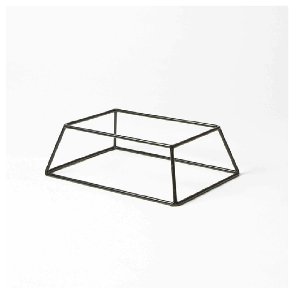 The American Metalcraft RSRB3 Stand is a versatile and durable piece designed with specific dimensions for various industry applications. Measuring 9"L x 6"W on the top and 11"L x 8"W on the bottom, this stand offers a practical rectangular shape that is both space-efficient and functional. With a height of 3-1/2", it provides an optimal elevation for showcasing or supporting items. This product is made from rubber-coated steel, ensuring a sturdy and slip-resistant surface in black, which complements any setting with a sleek and modern aesthetic. The reversible design adds flexibility for different use-case scenarios, allowing users to adapt the stand to their specific needs. The RSRB3 is intended for hand wash only, highlighting the necessity for gentle care to maintain its quality and appearance. This stand is particularly suitable for markets that require reliable and stylish display solutions, such as the food service, retail, or hospitality industries, where both functionality and visual appeal are paramount.