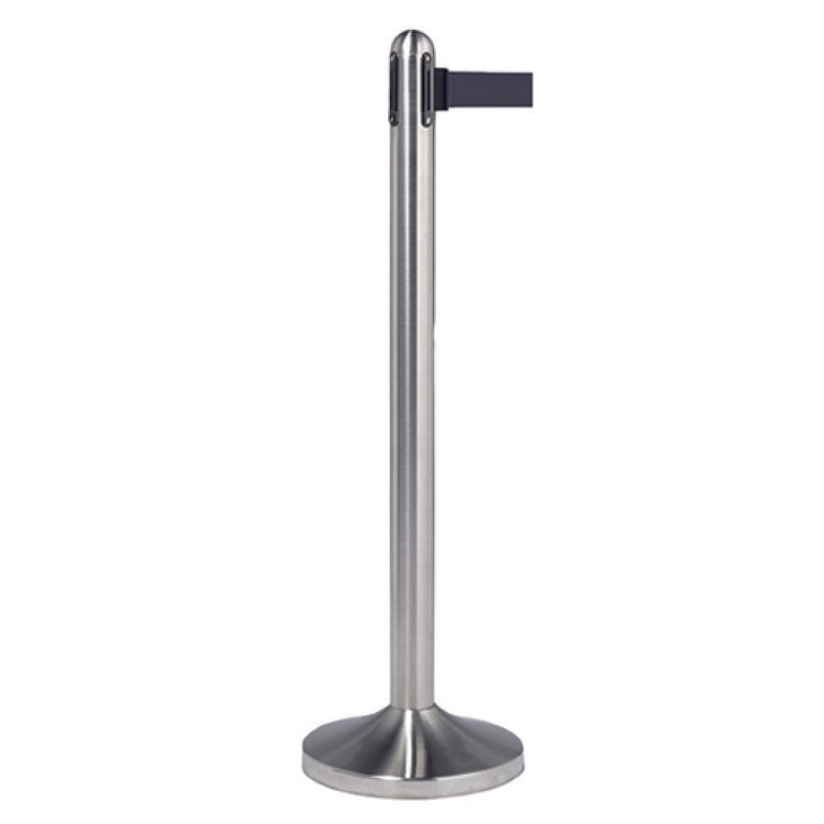 The American Metalcraft RSRTRVSBLC4 Replacement Post 40"H For RSRTBK is a specialized component designed for the RSRTBK system. Standing at a height of 40 inches, this replacement post is an essential support element crafted from brushed stainless steel, offering durability and a sleek, professional appearance. It comes equipped with an 84-inch black nylon tape, ensuring adequate reach and flexibility for crowd control or line management applications. This combination of features makes it a practical choice for venues such as airports, banks, hotels, and event spaces where managing customer flow smoothly is critical. The robust build quality of stainless steel ensures longevity and resistance to wear and tear in high-traffic environments, while the black nylon tape complements a variety of interior designs, maintaining a coordinated and cohesive look. Whether replacing worn components or expanding existing setups, the American Metalcraft RSRTRVSBLC4 provides a reliable and efficient solution for maintaining order and enhancing the functionality of queuing systems.