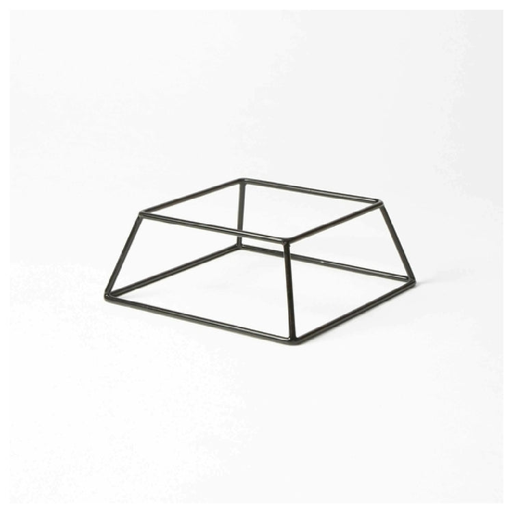The American Metalcraft RSSB3 Stand, with its practical design, features a 7" square top and a 9" square bottom, standing 3-1/2" tall. This square, reversible stand is crafted from rubber-coated steel, providing durability and stability for various applications. Finished in sleek black, it adds a modern touch to any setting. The unique value proposition of this stand lies in its reversible design, offering versatility for different presentation styles, making it a valuable asset for catering businesses, restaurants, and event planners. Its compact size makes it easy to incorporate into various tabletop settings, enhancing the display of dishes or decorative items. The rubber-coated steel construction ensures longevity and a non-slip surface for added safety. As a specialized product, it requires hand washing to maintain its condition, ensuring it remains a reliable tool over time. Suitable for both casual and fine dining environments, the American Metalcraft RSSB3 Stand combines functionality with aesthetic appeal, catering to the diverse needs of the food service industry.