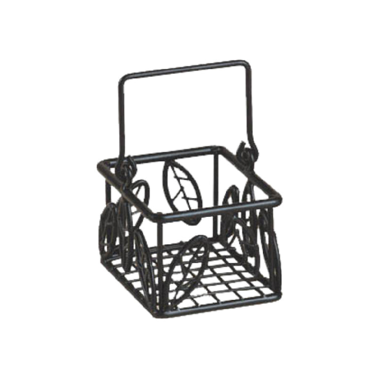 The American Metalcraft SBL353 Sugar Packet Basket is a meticulously crafted accessory designed to enhance the organization of sugar packets in a variety of settings. Measuring 3-1/2 inches in length, 2-3/4 inches in width, and 2-1/4 inches in height, this basket is compact yet practical, making it suitable for use in cafes, restaurants, and home dining tables. Featuring a distinctive leaf design, this basket adds a touch of elegance to any tabletop setting. Constructed from durable wrought iron, it boasts a sturdy build that ensures long-lasting use. The black finish of the basket provides a sleek and modern aesthetic, seamlessly fitting into diverse decor styles. Notably, this product requires hand washing, emphasizing its handcrafted appeal and the care needed to maintain its quality. The American Metalcraft SBL353 Sugar Packet Basket serves as a functional and decorative element, appealing to hospitality industry professionals and home entertainers alike who seek both utility and style in their serving accessories.
