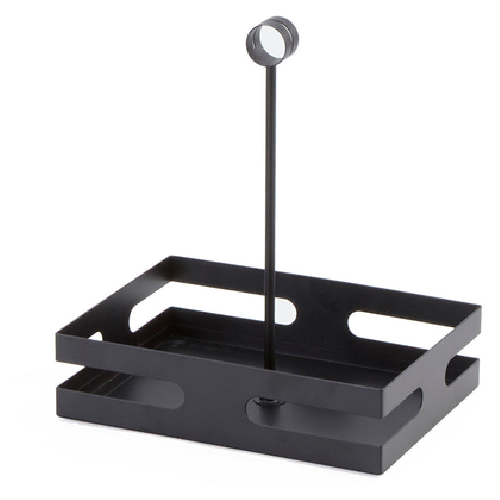 The American Metalcraft SCHB8 Condiment Rack is a sturdy and stylish organizational solution, measuring 8 inches in length, 5-7/8 inches in width, and 9-1/2 inches in height. This rectangular condiment rack is crafted from resilient steel and designed with a sleek black finish, ensuring it complements any setting while maintaining durability. Ideal for restaurants, cafes, and catering services, this rack offers a practical way to keep condiments neatly arranged and easily accessible to patrons or staff. Its compact size makes it suitable for small to medium-sized tables, optimizing space without sacrificing functionality. The steel construction ensures longevity and stability, while the hand wash only requirement underscores the need for careful maintenance to preserve its finish. The American Metalcraft SCHB8 Condiment Rack is a reliable and elegant choice for establishments looking to enhance their table service efficiency and aesthetic appeal. This product serves as an excellent solution for businesses seeking to streamline their condiment presentation, making it an essential addition to any food service operation focused on quality and convenience.