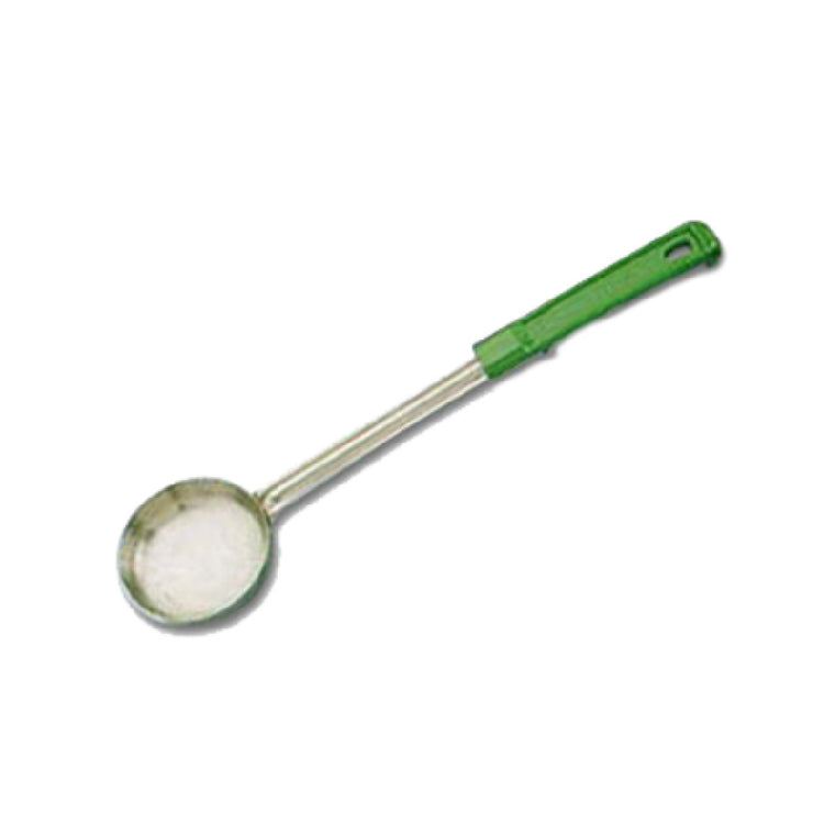 The American Metalcraft SPN4 Spooner 4 Oz. 3-3/8" Diameter Solid Stainless Steel Bowl is a precision-engineered utensil designed to meet the diverse needs of food service professionals. Featuring a high-quality solid stainless steel bowl, this ladle-style spooner is characterized by its 3-3/8" diameter, providing exceptional durability and resistance to corrosion. The 4 oz. capacity is ideal for precise portion control, catering to establishments that prioritize consistency in servings. Its 10-3/4" bakelite grip handle offers a comfortable and heat-resistant grip, ensuring safety during use in high-temperature environments. Crafted as a 1-piece construction, this spooner eliminates joints, enhancing its structural integrity and simplifying cleaning processes. A distinctive green accent not only adds a splash of color but also aids in easy identification among kitchen tools, making it a valuable asset for any busy kitchen. This well-constructed tool is suitable for different market segments within the food industry, such as restaurants, catering services, and institutional food operations, where reliability and efficiency are paramount. The American Metalcraft SPN4 Spooner perfectly balances functionality and style, making it an indispensable tool in the professional culinary sphere.