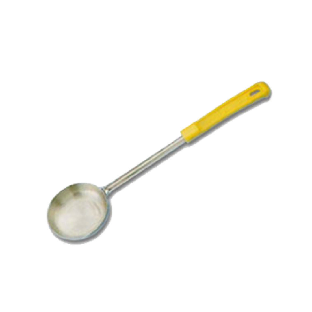 The American Metalcraft SPN5 Spooner 5 Oz. 3-1/2" Diameter Solid Stainless Steel Bowl is crafted to meet the diverse needs of various segments in the food service industry. This ladle-style spooner is distinguished by its solid stainless steel construction, ensuring durability and resistance to corrosion, which is critical for maintaining hygiene standards in professional kitchens. With a capacity of 5 ounces, it is ideal for precise portion control, making it a valuable tool for chefs and caterers alike. The bowl's 3-1/2" diameter is optimal for accommodating a variety of food types, enhancing its versatility across different culinary applications. The 10-3/4" bakelite grip handle provides exceptional heat resistance, ensuring safe and comfortable handling, which is essential in high-temperature cooking environments. Engineered as a one-piece unit, this spooner eliminates any potential weak points, resulting in a robust and reliable utensil that endures the rigors of continuous use. Available in a distinct yellow color, it can be easily identified among kitchen tools, facilitating efficient workflow. The American Metalcraft SPN5 Spooner is an indispensable addition to commercial kitchens, valued for its combination of practicality, durability, and ergonomic design.