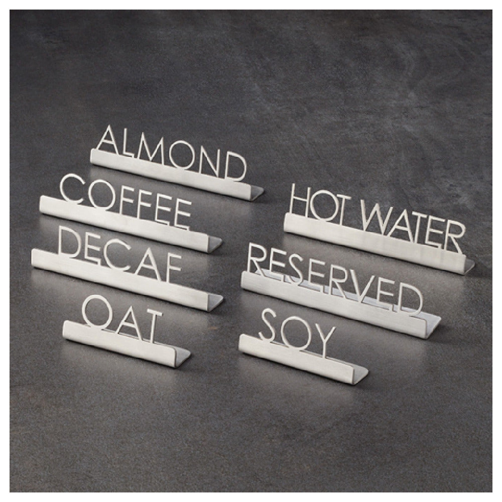 The American Metalcraft SSA5 Sign Stainless Steel Almond is a meticulously crafted signage solution designed for various professional settings, offering both durability and aesthetic appeal. Constructed from high-quality stainless steel, this sign is engineered to withstand the rigors of daily use, making it an ideal choice for environments where longevity and resilience are paramount. The elegant almond finish adds a subtle sophistication, ensuring that the sign complements a variety of interior designs and color schemes. Measuring at a practical size suitable for easy visibility, the SSA5 sign is versatile and can be used in an array of settings, from hospitality venues to corporate offices, where clear communication is essential. Its stainless steel construction not only ensures corrosion resistance but also provides an easy-to-clean surface, maintaining its pristine appearance over time. This product is a testament to American Metalcraft's commitment to quality and functionality, offering a reliable signage solution that meets the demands of any professional environment. Its understated elegance and robust design make it a valuable asset for businesses looking to enhance their space with practical yet stylish signage.