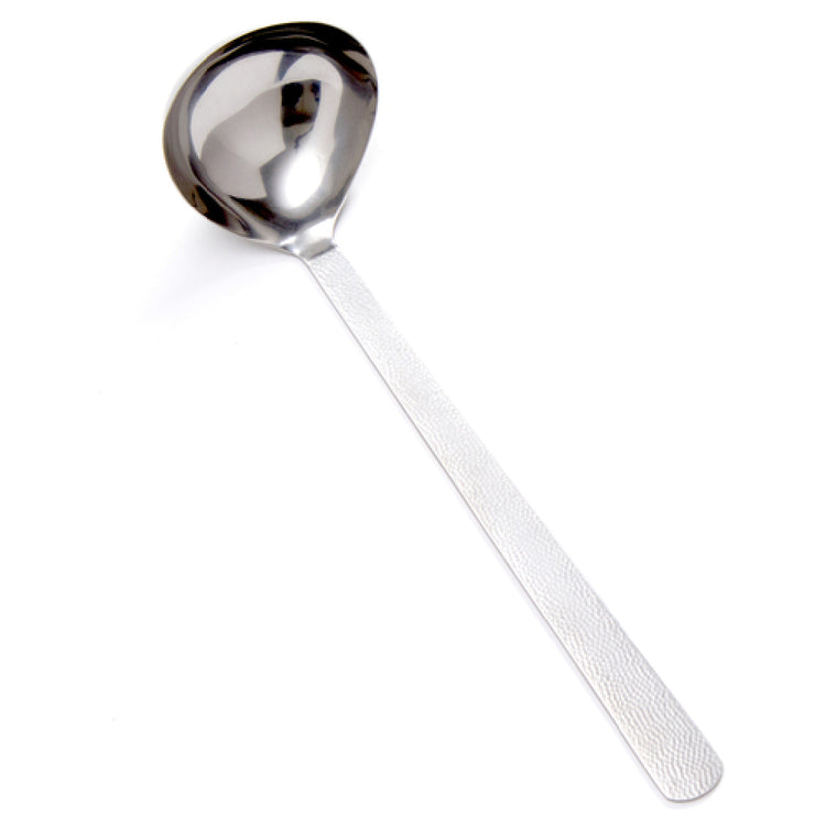 The American Metalcraft SVHL Ladle 3-1/2 Oz. 13"L is a sophisticated culinary utensil designed for both professional and home kitchens, serving a variety of market segments with its exceptional craftsmanship and utility. Featuring a generous 3-1/2 oz. capacity, this ladle is perfect for precise portioning and serving of soups, sauces, and other liquid dishes. Its 13-inch length ensures a comfortable reach into deeper pots and bowls, minimizing the risk of spills and enhancing user convenience. The hammered finish gives it a unique vintage aesthetic, adding a touch of elegance to any kitchen setting. Made from high-quality stainless steel, the SVHL ladle promises durability and resistance to corrosion. This construction not only ensures longevity but also makes it easy to maintain, withstanding the demands of continuous use in busy restaurant environments or culinary institutions. Its versatile design makes it an ideal tool for chefs and culinary enthusiasts who value both style and functionality in their kitchenware. Whether used in a bustling restaurant or a cozy home kitchen, the American Metalcraft SVHL Ladle stands out for its blend of practical features and classic design, making it a valuable addition to any culinary toolkit.