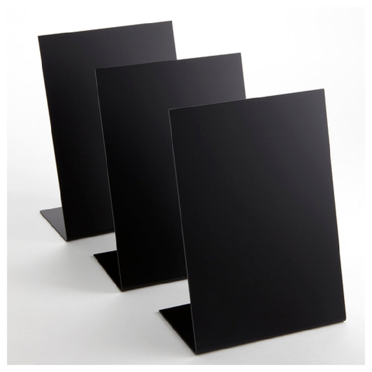 The American Metalcraft TBABLA5 Chalkboard is a versatile and practical addition to any tabletop setting, measuring at 5-7/8 inches in length, 3 inches in width, and standing 8-1/4 inches tall. This standalone chalkboard is distinctively designed in black, providing a sleek and modern touch to any environment. Perfectly suited for a range of industries, including hospitality, dining, and retail, its compact size allows for easy placement on tables or counters, where it can serve as an elegant solution for signage or menu displays. This chalkboard comes in a convenient pack of three, making it an excellent choice for businesses looking to maintain a consistent and professional look across multiple spaces. Its sturdy construction ensures durability and long-lasting use, making it a reliable choice for high-traffic areas. The American Metalcraft TBABLA5 Chalkboard is ideal for establishments that prioritize both aesthetics and functionality, offering a unique value proposition for those seeking an efficient way to communicate messages to customers. Whether used for menu highlights, promotional displays, or special announcements, this chalkboard is a practical tool that enhances customer engagement through its straightforward yet stylish design.