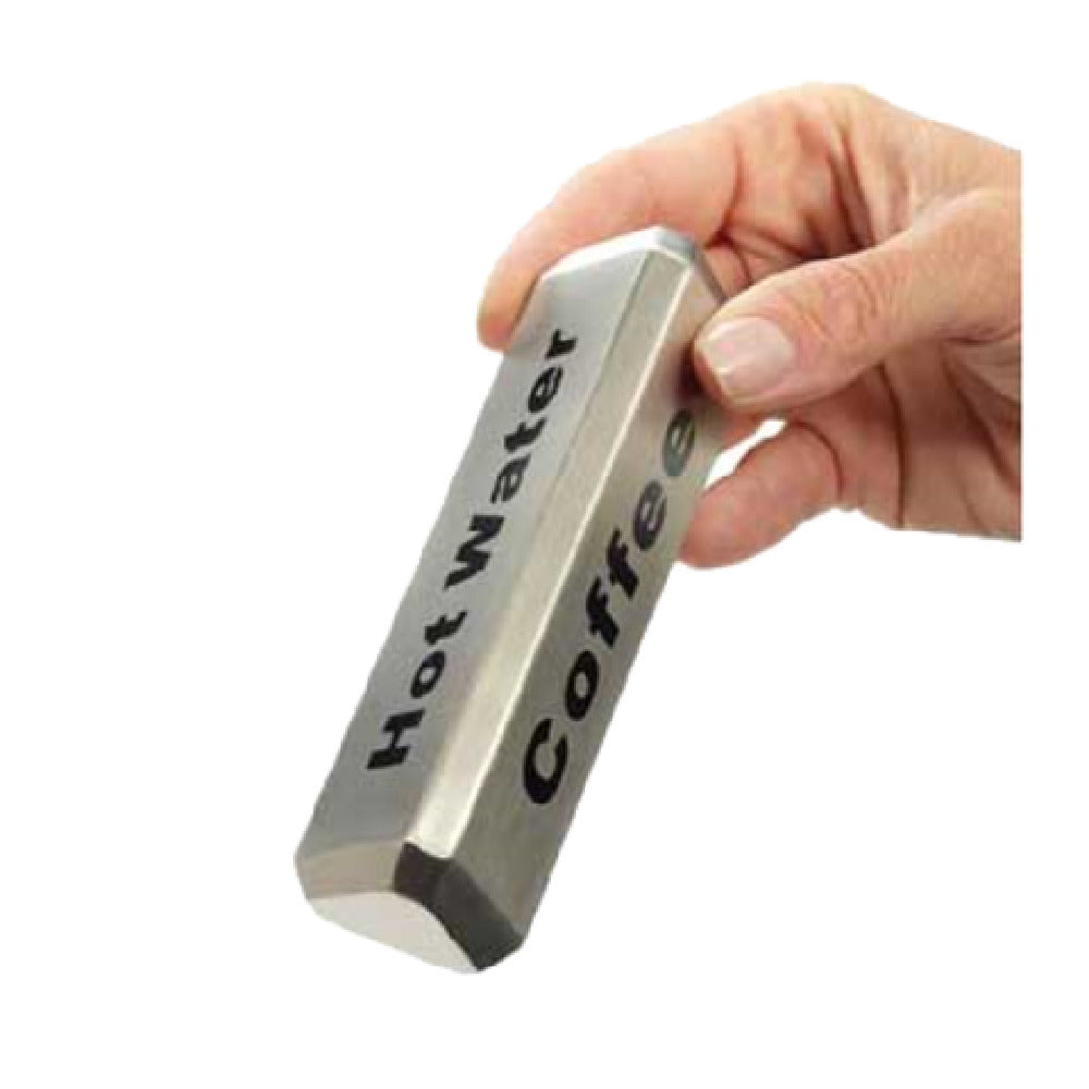 The American Metalcraft TTSB3 Beverage Sign is a versatile and functional accessory designed to enhance beverage service in various settings. Measuring 4-3/4 inches in length, 1-1/2 inches in width, and 1-3/8 inches in height, this triangular, three-sided sign efficiently identifies beverage options such as Coffee, Decaf, and Hot Water. Crafted from durable stainless steel, it boasts a smooth satin finish that lends a touch of elegance to any serving station. The TTSB3 Beverage Sign is particularly valuable for establishments such as cafes, hotels, and conference centers where clear and professional beverage labeling is essential. Its tri-sided design ensures visibility from multiple angles, improving the guest experience by reducing confusion and enhancing self-service efficiency. This product stands out in the industry for its combination of practicality, durability, and aesthetic appeal, making it an ideal choice for businesses looking to streamline their beverage presentation while maintaining a polished and organized appearance. The high-quality materials and thoughtful design of the American Metalcraft TTSB3 reflect a commitment to excellence, offering a reliable solution for beverage identification needs across diverse market segments within the hospitality industry.