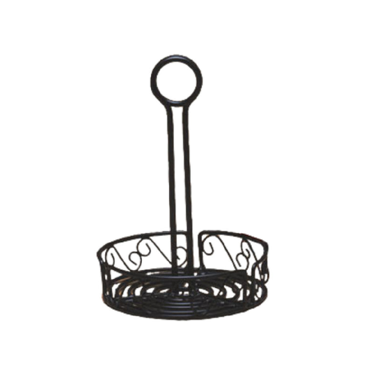 The American Metalcraft WBCC6 Ironworks™ Condiment Rack is a meticulously crafted accessory designed to enhance table organization in the food service industry. Measuring 6-1/4 inches in diameter and 9 inches in height, this round condiment rack is crafted from durable black wrought iron, ensuring longevity and a timeless aesthetic appeal. Its unique scroll design adds an element of elegance, making it suitable for diverse dining settings, from casual to upscale. The central handle is not only a convenient carrying feature but also includes a slot specifically designed to hold a table number, which is not included, providing versatility in table identification and service. This piece is intended for hand washing only, underscoring the care required to maintain its distinctive appearance and structural integrity. The American Metalcraft WBCC6 is an ideal choice for restaurants, cafes, and catering services that require a reliable and stylish solution for organizing condiments on their tables, enhancing both the functionality and visual appeal of dining spaces.