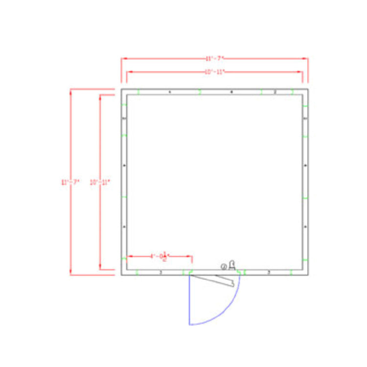 - 7'-3-3/4" H x 11'-7" W x 11'-7" D dimensions