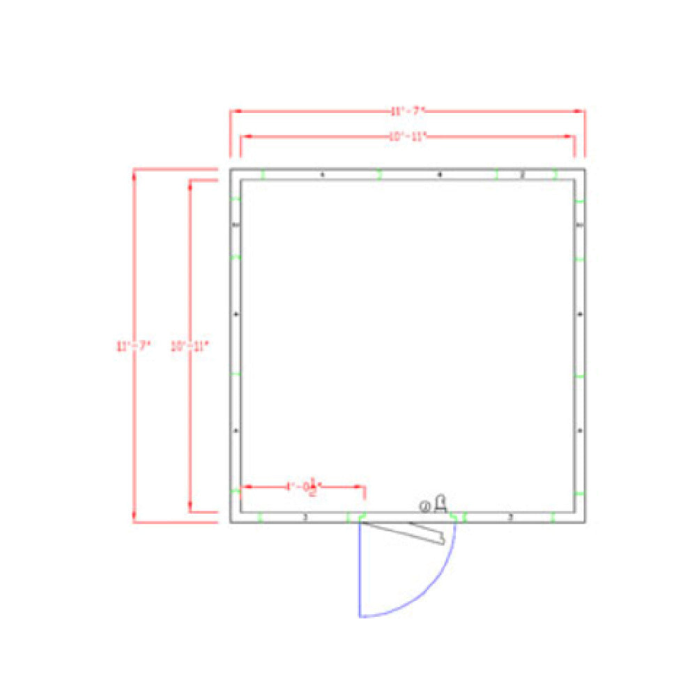 - Walk-in freezer with ample space: 7'-6" H x 11'-7" W x 11'-7" D