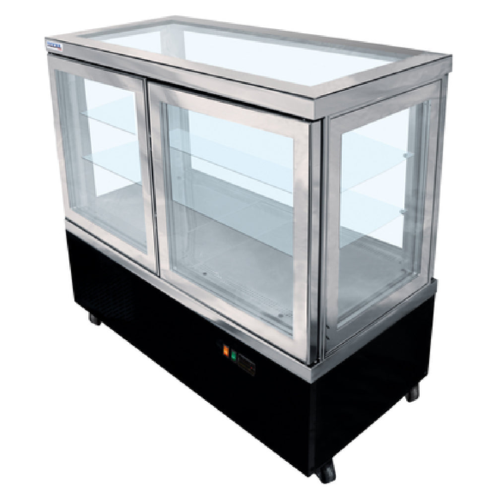 - Freestanding full service refrigerated display case