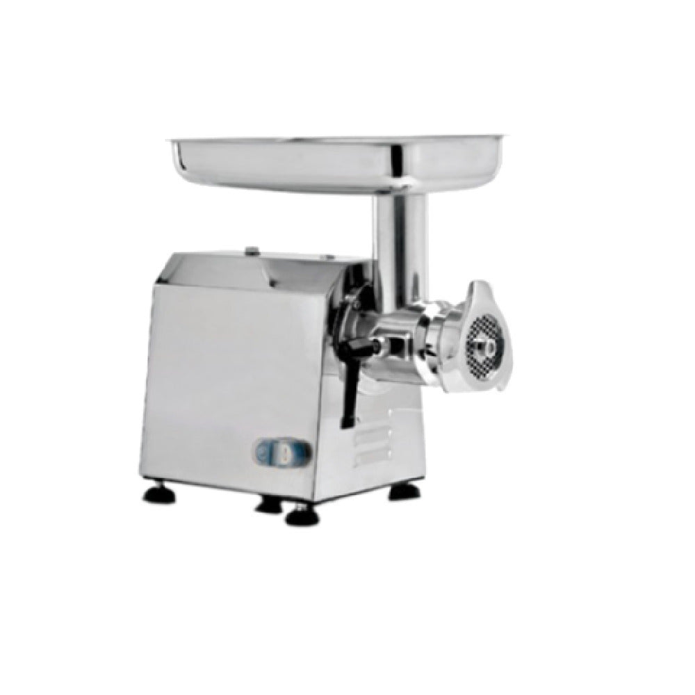 The AMPTO MCC22E Meat Grinder Electric is an exceptional machine, tailored for high-efficiency meat processing with a robust production capacity of 660 pounds per hour. This electric grinder is equipped with a #22 hub and a spacious 13" x 8" feed pan, ensuring ample space for processing large quantities of meat. The inclusion of a stainless steel tray enhances its durability and cleanliness, while the 1/4" (6mm) plate facilitates precise meat grinding. Crafted from die-cast aluminum alloy, the AMPTO MCC22E is built to withstand rigorous use while maintaining a lightweight structure. Operating at a steady 140 revolutions per minute, this grinder is powered by a 1-1/2 horsepower motor, offering consistent and reliable performance. Certified by CE and proudly made in Italy, this meat grinder embodies quality craftsmanship and adherence to strict safety standards. It is particularly suited for various market segments within the meat processing industry, including small butcher shops, large-scale meat production facilities, and gourmet food services seeking efficient and high-capacity grinding solutions. The AMPTO MCC22E stands out as a versatile and durable choice, designed to meet the demands of professionals requiring reliable and high-quality meat processing equipment.