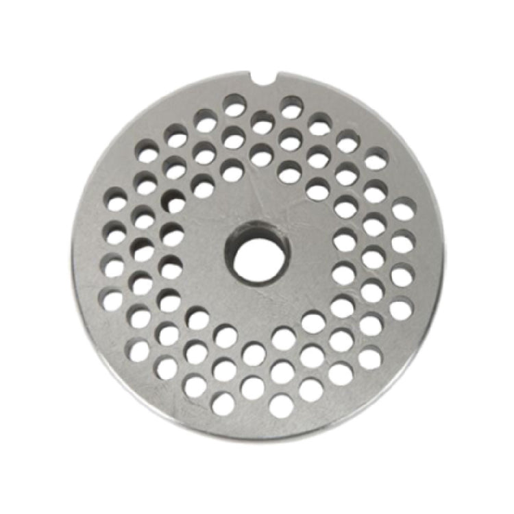 The AMPTO RFAM032 Grinder Plate #22-3/16” (4.5 mm) is a precision-engineered component essential for meat processing operations, designed to fit seamlessly within meat grinders requiring a #22 plate size. With its 3/16” (4.5 mm) hole size, this grinder plate is particularly suited for producing medium-coarse grinds, making it ideal for a variety of applications, ranging from crafting sausages to creating ground meat blends. The specific hole diameter ensures that the meat is processed consistently, delivering uniform texture and quality. This grinder plate is constructed to exacting standards, ensuring durability and longevity, which is critical for high-volume processing environments. Its compatibility with an array of commercial meat grinders enhances its versatility, making it a valuable tool for butchers, meat processors, and food service establishments looking to maintain high standards of product quality. The AMPTO RFAM032 Grinder Plate stands out for its precise engineering and adaptability across various segments of the meat processing industry, underscoring its role in optimizing operational efficiency and output consistency. This component’s robust design is indicative of AMPTO’s commitment to delivering reliable and effective solutions for food processing professionals.