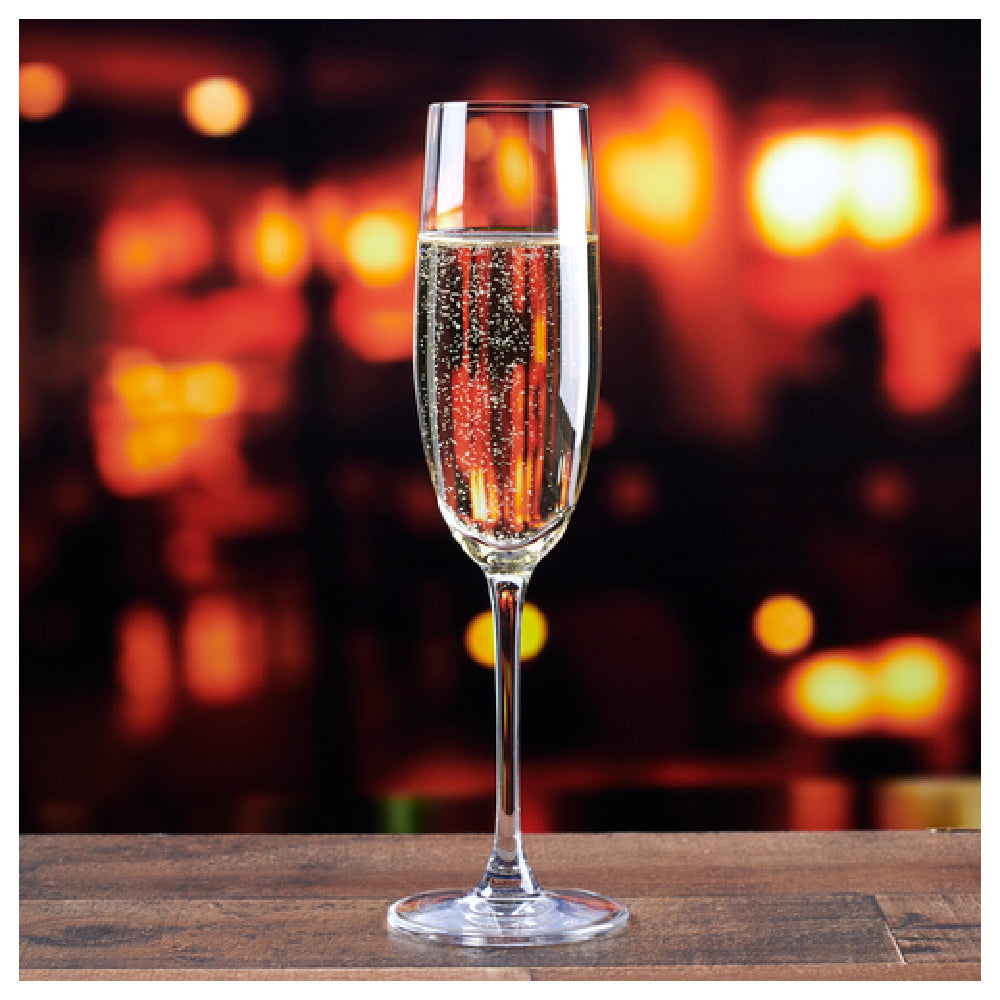 The Anchor Hocking 1LS01CP06 Champagne Glass is a meticulously crafted piece of glassware, ideal for enhancing the enjoyment of sparkling wines and champagnes. With a volume capacity of 6 ounces, this clear glass offers ample room to appreciate the effervescent qualities of your favorite bubbly. Known as the Bangkok Bliss, it is available in cases containing two dozen glasses, ensuring that venues and events with high guest turnover are well-equipped to meet demand. The glass is designed by Anchor Hocking Foodservice, a brand renowned for its commitment to quality and innovation in glassware production. The clarity of the glass is perfect for showcasing the color and carbonation of the champagne, allowing for an elegant presentation. This champagne glass is versatile, catering to a diverse range of market segments within the foodservice industry, from high-end restaurants to bustling event spaces, and even for personal collectors who appreciate refined glassware. The Anchor Hocking 1LS01CP06 Champagne Glass is distinguished by its sophisticated design and practical functionality, making it a valuable addition to any setting where style and quality are paramount. Its thoughtful construction not only highlights the beverage's aesthetic but also enhances the overall drinking experience.
