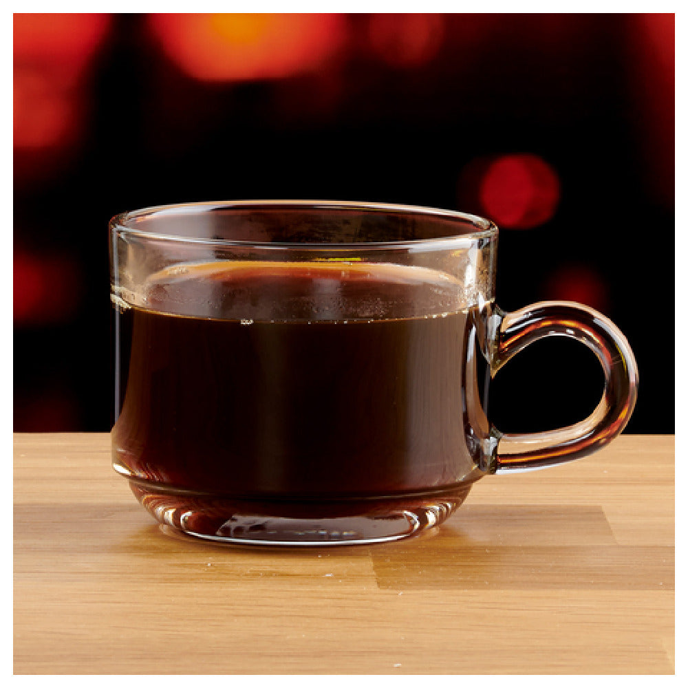 The Anchor Hocking 1P00340 Teacup 6-3/4 Oz. Glass is a meticulously crafted piece of glassware designed for both functionality and elegance. This teacup holds a precise capacity of 6-3/4 ounces, making it an ideal choice for serving teas of various kinds. Its clear glass construction allows for a pristine presentation, enhancing the visual experience of the beverage it contains. A notable feature of this teacup is its stackable design, which provides a practical solution for efficient storage, particularly beneficial for establishments with limited space. Each case contains 6 dozen of these teacups, emphasizing their suitability for large-scale foodservice operations. The durable and high-quality glass material ensures longevity and resilience in high-traffic environments such as cafes, restaurants, and hotels. The Anchor Hocking 1P00340 Teacup not only complements the aesthetics of any table setting but also meets the functional demands of diverse market segments within the food and beverage industry. Its versatile design and utility make it a valuable addition to any culinary establishment, highlighting the balance between practicality and sophistication that Anchor Hocking is renowned for.