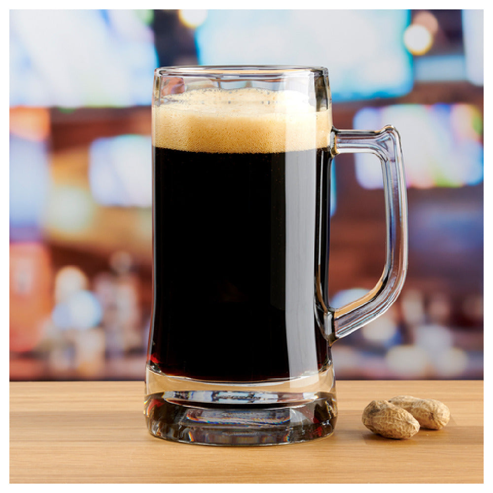 The Anchor Hocking 1P00843 Beer Mug 21-1/2 Oz. Glass is a robust and versatile choice for any foodservice establishment seeking durable glassware tailored for an authentic drinking experience. With a generous capacity of 21-1/2 ounces, this clear glass mug is perfect for serving a variety of beverages, enhancing the presentation of everything from craft beers to classic lagers. Its design is inspired by the traditional Munich style, offering a timeless aesthetic that complements any bar or dining setting. This product is available in cases of one dozen, making it a practical option for establishments requiring bulk quantities without compromising on quality. The mug's sturdy construction ensures it can withstand the rigors of frequent use in high-volume environments, while its clear glass design enhances the visual appeal of its contents. Manufactured by Anchor Hocking, a trusted name in glassware, this beer mug combines functionality with an enduring design. Ideal for breweries, pubs, and restaurants, the Anchor Hocking 1P00843 Beer Mug is a reliable choice for serving beverages in style and comfort, ensuring that each serving is consistent with the high standards expected in professional foodservice operations.