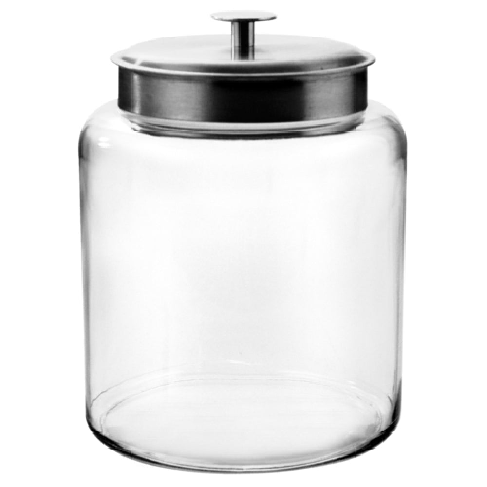 The Anchor Hocking 91523AHG17 Jar - 2 Gallon 8-5/8" Dia. X 11-3/4"H is a versatile storage solution tailored for diverse market segments within the foodservice industry. This glass jar, designed with a spacious 2-gallon capacity, is ideal for bulk storage applications. Its dimensions, featuring an 8-5/8" diameter and an 11-3/4" height, make it a compact yet capacious choice for kitchens that demand efficiency and organization. The jar comes with a stainless steel cover that boasts a brushed finish, enhancing its aesthetic appeal while ensuring durability and resistance to corrosion. The clear glass construction of the jar allows for easy visibility of contents, making it an invaluable asset for foodservice establishments that require quick inventory assessments. The Anchor Hocking 91523AHG17 is packed individually per case, ensuring that each unit is delivered in pristine condition. Known within the industry as the "Montana," this jar is not only functional but also presents a sleek design that complements any kitchen or storage area. Its robust build and practical design make the Anchor Hocking 91523AHG17 an excellent choice for businesses seeking reliable and attractive storage options.