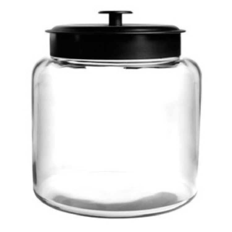 The Anchor Hocking 96711AHG17 Mini Jar is a versatile storage solution with a substantial capacity of 64 oz., catering to various storage needs across different industry segments. This jar measures 6-7/8 inches in diameter and 7-1/2 inches in height, providing ample space for storing dry goods, spices, or other kitchen essentials. It features a stylish black metal cover, which not only enhances its aesthetic appeal but also ensures a secure seal to maintain the freshness of its contents. Crafted from clear glass, this jar allows for easy viewing of the stored items, making inventory management more efficient in busy foodservice environments. The jar's clear glass construction is not only durable but also easy to clean, making it a practical choice for both home and professional kitchens. Sold as Montana, these jars come two per case (Packed By: Cs), offering excellent value for commercial settings such as restaurants, cafes, or catering businesses where bulk storage is often necessary. The Anchor Hocking 96711AHG17 Mini Jar seamlessly combines functionality with a sleek design, making it an essential addition to any kitchen setup.