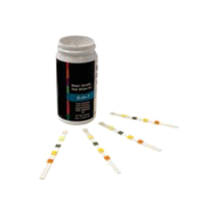 The Antunes 7000750 Water Test Kit 5-in-1 is a comprehensive testing solution designed for professionals and enthusiasts in the water quality industry. This versatile kit enables precise measurements across five key parameters: it measures total hardness in grains per gallon, providing essential data for understanding water mineral content. Additionally, it assesses total chlorine and free chlorine levels in parts per million (ppm), crucial for evaluating water sanitation standards. The kit also measures total alkalinity in ppm, which is vital for maintaining balanced water chemistry. Finally, the kit includes pH testing capabilities, offering insights into the water's acidity or basicity with high precision. With 50 test strips included, the Antunes 7000750 Water Test Kit is an invaluable tool for various segments, including residential water quality monitoring, industrial applications, and environmental testing efforts. Its detailed, multi-parameter testing ability makes it an indispensable asset for ensuring water quality and safety across different contexts. This product's unique value lies in its all-in-one approach, providing a comprehensive picture of water health and quality, which is essential for informed decision-making and effective water management practices.