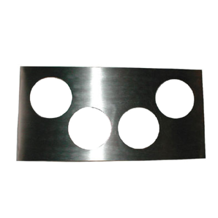 The APW Wyott 56640 Adapter Plate - (4) 4 Quart Inset Holes Model W-43V Warmer is a specialized kitchen accessory designed for seamless integration with the W-43V warmer. Featuring four precisely engineered 4-quart inset holes, this adapter plate significantly enhances the versatility and functionality of the W-43V warmer, catering to the diverse needs of food service professionals. Its robust construction ensures durability and reliability, making it an essential component in high-demand commercial kitchen environments. The model is meticulously crafted by APW Wyott, a part of the Middleby Corporation, known for its innovative food service solutions. This adapter plate is ideal for establishments requiring efficient food warming and serving capabilities, such as restaurants, catering services, and buffet lines. Its compatibility with the W-43V warmer ensures a snug fit and optimal performance, maintaining consistent temperatures and quality of the food being served. This product is particularly valuable for market segments that prioritize precision and efficiency in food service equipment, providing a practical solution for managing multiple dishes simultaneously. Embracing this adapter plate as a part of your kitchen setup can streamline operations and elevate the overall dining experience, underlining the importance of quality and functionality in culinary environments.