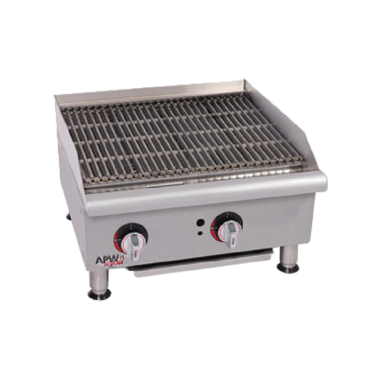 APW Wyott (Middleby), GCB-36S_LP, Workline Charbroiler, gas, countertop, 36”W x 28-1/2"D (overall), thin-line cast iron grates removable in 6" sections, heavy duty stainless steel radiants, stainless steel front, aluminized steel back & sides, 4" adjustable legs, 90,000 BTU, cULus, UL EPH Classified