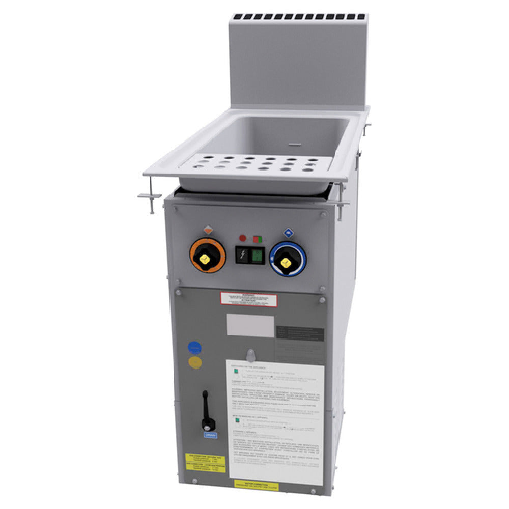 The Arcobaleno Pasta Equipment ADGH35 Pasta Cooker Gas Drop-in is a specialized unit designed for commercial kitchens that demand high efficiency in pasta preparation. This gas-powered pasta cooker features a single tank with a substantial 11-gallon capacity, making it suitable for high-volume culinary operations. The continuous water fill system ensures consistent cooking conditions, while the variable burner temperature allows precise control to achieve perfect results. Equipped with a water safety sensor, the cooker maintains safe operational standards. The built-in water tap and drain facilitate seamless water management, enhancing convenience for the user. An essential feature is its large diameter starch skimmer, designed to keep pasta water clear and improve cooking quality. Constructed from robust 316 stainless steel, the tank offers exceptional durability and resistance to corrosion, complemented by the overall stainless steel construction of the unit. With an output of 80,185 BTU, the cooker ensures quick heat-up times and efficient cooking performance. It operates on a 120v/60/1-ph electrical connection with a minimal power requirement of 0.015kW and 0.24amps. Certified by cETLus and ETL-Sanitation, this pasta cooker meets high safety and sanitation standards. Note that custom integration into a kitchen suite is required, and further details can be obtained by contacting us.