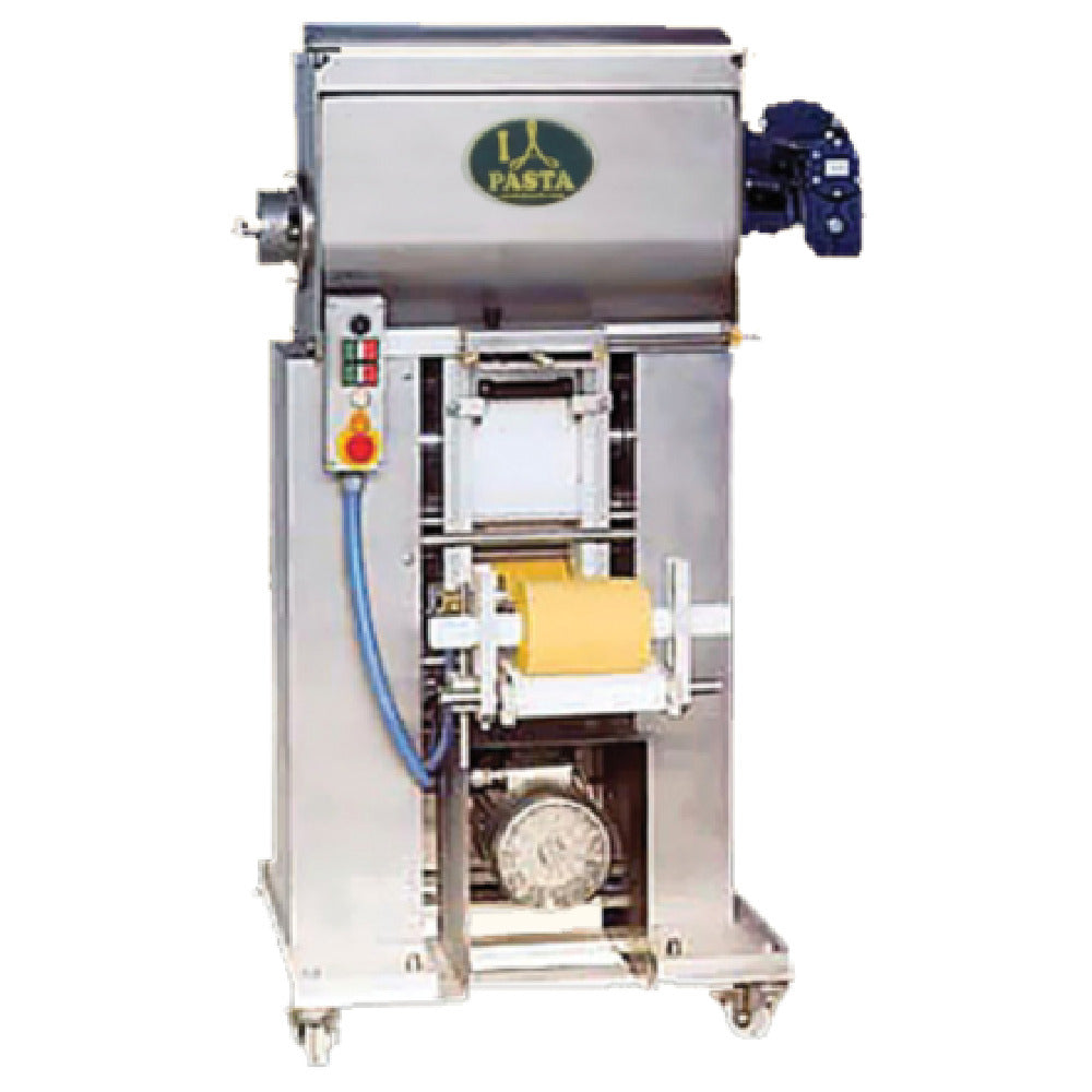 The Arcobaleno Pasta Equipment ADS160 Dough/Pizza Sheeter Floor Model Automatic is a highly efficient machine designed to meet the demands of the food service industry. Engineered to produce consistent 6-1/4-inch wide sheets, this automatic sheeter is capable of handling a mixer production of up to 85 pounds, with an impressive output capacity of 180-200 pounds per hour. Constructed from durable stainless steel, it ensures longevity and reliability, complemented by its 2-1/2 HP motor that operates on 220 volts, 60 Hz, and three-phase power, utilizing a NEMA L15-20P plug. The removable mixing shaft enhances the ease of cleaning and maintenance, making it an ideal choice for bakeries, pizzerias, and other commercial kitchens where efficiency and sanitary conditions are paramount. This model's inclusion of casters provides mobility, allowing it to be conveniently repositioned as needed within a workspace. With CE certification, it meets essential safety standards, ensuring peace of mind for operators. The Arcobaleno ADS160 is a powerhouse in dough and pizza sheeting, designed to streamline production processes and support high-volume outputs, making it an invaluable asset for businesses within the culinary sector seeking robust performance and reliability.
