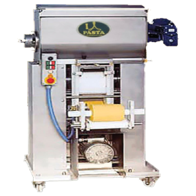Arcobaleno Pasta Equipment ADS320 Dough Sheeter Floor Model Automatic is engineered for high-efficiency pasta production, offering unparalleled performance with its advanced features. This automatic dough sheeter is designed to produce 12-1/2" wide sheets, accommodating various pasta-making needs. It boasts a robust production capacity, with a mixer capable of handling 140 lbs and an impressive output of 450-575 lbs per hour, making it suitable for both small-scale artisanal operations and large-scale industrial pasta production. Its stainless steel construction ensures durability and easy maintenance, while the removable mixing shaft allows for convenient cleaning and part replacement. The equipment is fitted with casters, enhancing mobility and ease of operation within a workspace. Powered by a 5-1/2 HP motor, it operates on a 220v/60/3-ph electrical setup, drawing 6.0 amps, and is equipped with a NEMA L15-20P plug type. Certified by CE, this dough sheeter not only meets rigorous safety standards but also offers reliable performance. Its unique combination of high capacity, durable construction, and ease of use positions the Arcobaleno Pasta Equipment ADS320 as an essential tool for culinary professionals, catering to a wide range of pasta production requirements across different market segments within the food industry.