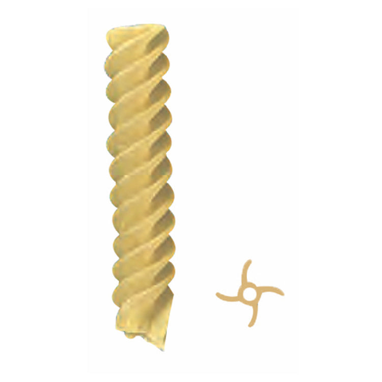The Arcobaleno Pasta Equipment AEX130 & AEX130M#223 Extruder Die-9mm-4P is a highly specialized tool designed for pasta production, specifically crafted to create fusilli pasta with precision and consistency. This extruder die, with its 9mm size and unique 4P configuration, is a perfect match for the Arcobaleno AEX130 and AEX130M pasta extruders, ensuring seamless integration and optimal performance. Engineered for professional kitchens and artisanal pasta makers, this equipment stands out with its capability to produce uniform fusilli, a popular pasta shape known for holding sauces effectively due to its spiral design. By incorporating this die into your pasta production line, you can achieve a high-quality output that meets the demands of both small-scale operations and larger food manufacturing environments. The precision engineering of the AEX130 & AEX130M#223 Extruder Die ensures durability and reliability, making it a valuable investment for businesses focused on delivering consistent pasta products. Its application is broad, catering to Italian restaurants, commercial food manufacturers, and culinary institutions aiming to enhance their pasta offerings with expertly crafted fusilli. This product's technical specifications and compatibility make it an essential component for those looking to advance their pasta-making capabilities with efficiency and finesse.