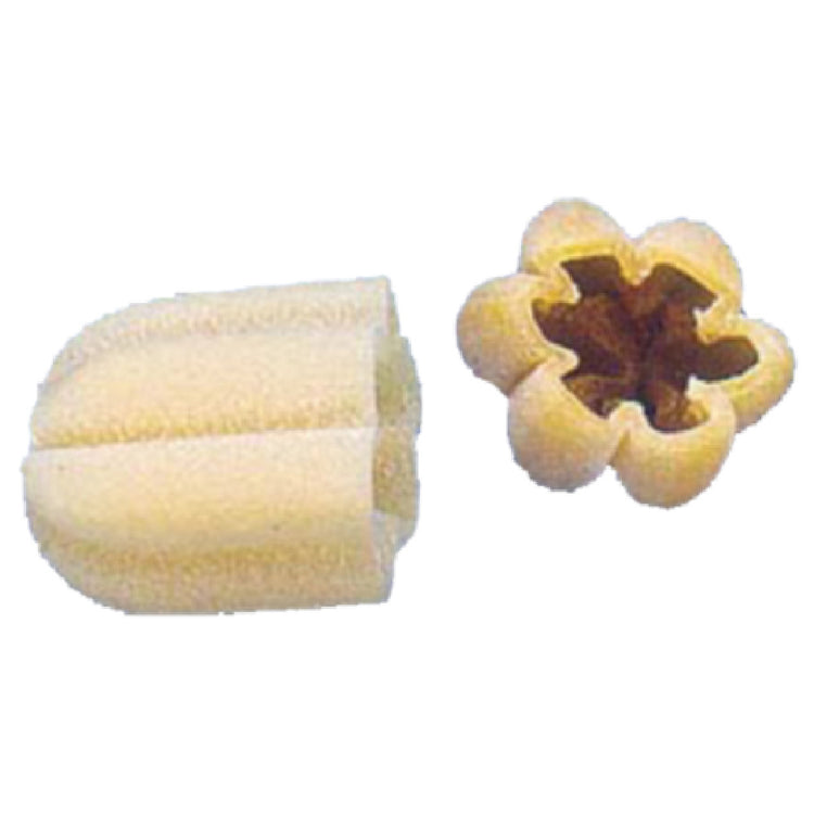 The Arcobaleno Pasta Equipment AEX130 & AEX130M#374 Extruder Die Flower Pasta is a specialized tool designed for pasta production, notable for its versatility and precision in crafting unique flower-shaped pasta. Engineered for use with the AEX130 and AEX130M series, this extruder die is an essential component for commercial kitchens and artisanal pasta makers aiming to diversify their pasta offerings with intricate shapes. The die's construction facilitates seamless integration with the existing equipment, ensuring consistency and quality in each batch of pasta produced. Its robust design promises durability and longevity, making it a valuable investment for businesses focused on producing high-quality pasta products. This extruder die not only enhances the aesthetic appeal of pasta but also maintains the texture and taste that pasta lovers expect. By leveraging the full capabilities of the AEX130 and AEX130M models, the Extruder Die Flower Pasta expands the creative potential in pasta manufacturing, catering to both large-scale operations and boutique culinary artisans. Its efficient design supports high-volume production while ensuring each piece of pasta retains its distinctive flower shape, positioning it as a standout element in any pasta production line.
