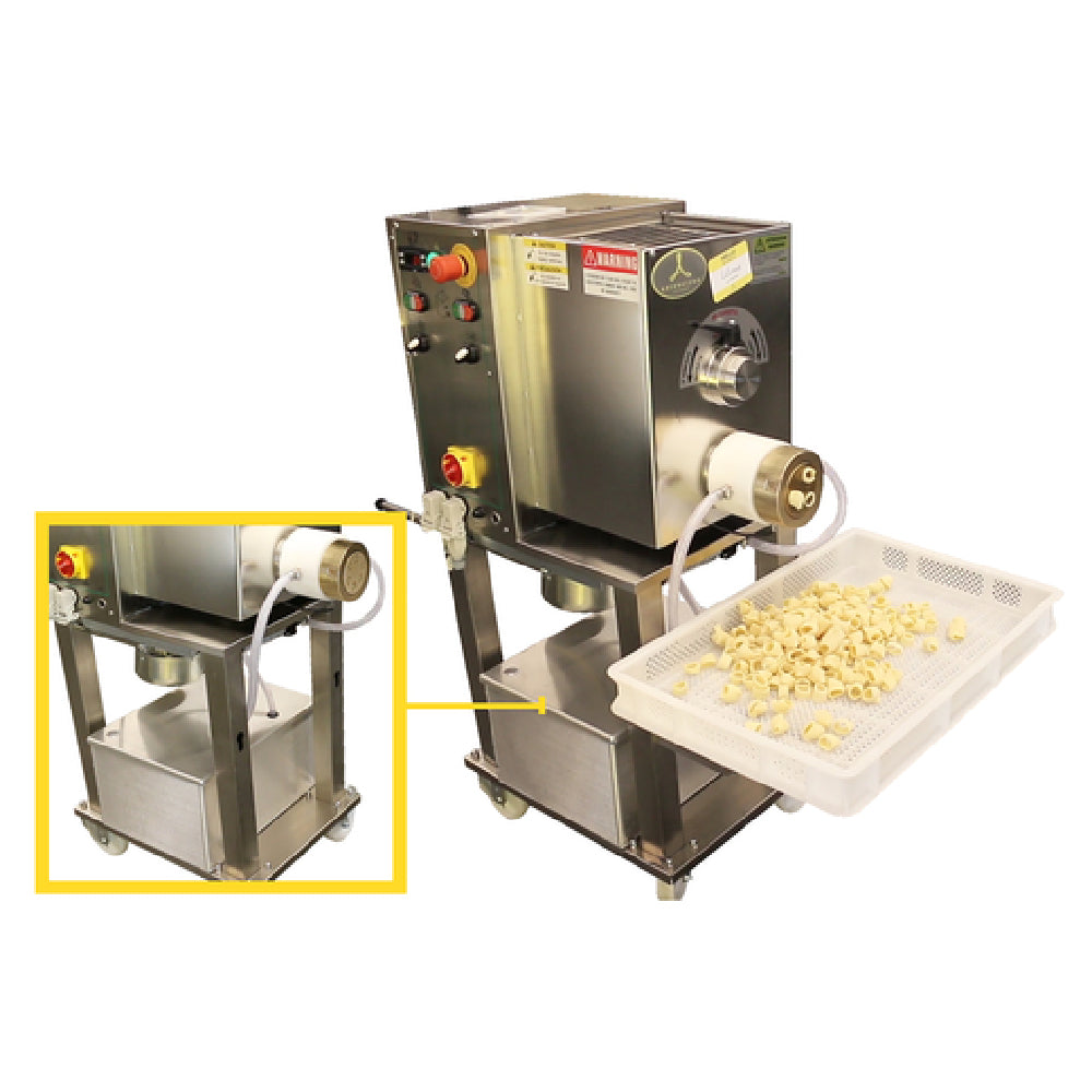 The Arcobaleno Pasta Equipment AMFE50WCT Water Cooling Tank is a highly efficient solution designed for pasta production facilities, offering a generous capacity of 7.5 gallons. This equipment is equipped with a recirculating pump, ensuring consistent water movement to maintain optimal cooling conditions. The automatic on-off feature provides convenience and energy efficiency, allowing the system to activate or deactivate as needed without manual intervention. One notable advantage of the AMFE50WCT is its requirement for no plumbing, streamlining installation and operation processes, as it comes pre-installed by the factory. This makes it particularly appealing for pasta manufacturers seeking a hassle-free setup. The Arcobaleno AMFE50WCT is ideal for both small artisanal pasta makers and larger commercial operations, providing a reliable and effective cooling system to enhance production processes. Its design caters to those in pursuit of seamless integration into existing manufacturing lines without the need for complex modifications. By delivering precise water cooling capabilities, this equipment supports the production of high-quality pasta, meeting the needs of diverse market segments within the pasta-making industry. This product exemplifies a blend of practicality and advanced functionality, establishing it as a valuable asset for any pasta production environment.