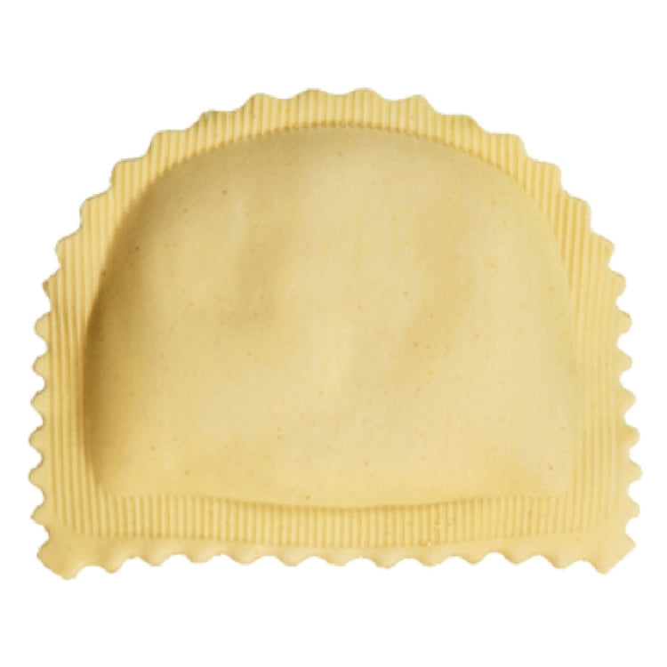 Arcobaleno Pasta Equipment MOLD-AMFR-44 Ravioli Mold #44 is a precision-engineered tool designed for efficient pasta production, particularly suited for culinary professionals and pasta enthusiasts. This mold produces ravioli with a precise weight of 65 grams, featuring dimensions of 100mm x 80mm. The unique half-moon shape with a scalloped edge enhances both the aesthetic appeal and texture of the ravioli. With the capability to produce 42 pieces per minute, it significantly boosts productivity, making it ideal for high-demand commercial kitchens. The mold includes two pieces per circumference and one piece per width, ensuring consistent and uniform results with every use. Designed to be compatible with AMFR and AMFE50 pasta machines, this mold integrates seamlessly into existing pasta production lines. Its robust construction ensures durability, while its precise specifications support consistency in pasta production. The Arcobaleno Pasta Equipment MOLD-AMFR-44 Ravioli Mold #44 is an invaluable asset for businesses seeking efficiency and quality in pasta making, catering to a wide range of market segments within the food industry.