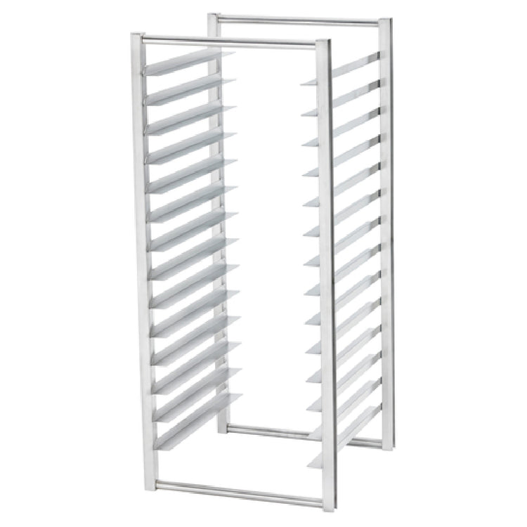 The Arctic Air 64900K Sheet Pan Rack is a free-standing unit designed to enhance the efficiency and organization of professional kitchens, bakeries, and food service operations. This versatile rack accommodates up to 14 standard 18" x 26" sheet pans, with each pan slot positioned at 3" centers, offering ample space for storing and cooling baked goods, prepared ingredients, or ready-to-serve dishes. It is compatible with specific Arctic Air models - AGR23, AR49, AGR49, and AF49 - allowing seamless integration into existing kitchen setups. The 64900K Sheet Pan Rack is priced per section, providing a cost-effective solution for foodservice establishments of varying sizes. Its sturdy construction ensures durability and stability, making it a reliable choice for environments with high-volume requirements. The rack's design optimizes vertical space usage, helping to maintain an organized kitchen while facilitating quick and easy access to sheet pans. With its robust capacity and compatibility with other Arctic Air products, the Arctic Air 64900K Sheet Pan Rack presents a valuable addition to any commercial kitchen seeking to streamline its operations and maximize efficiency.