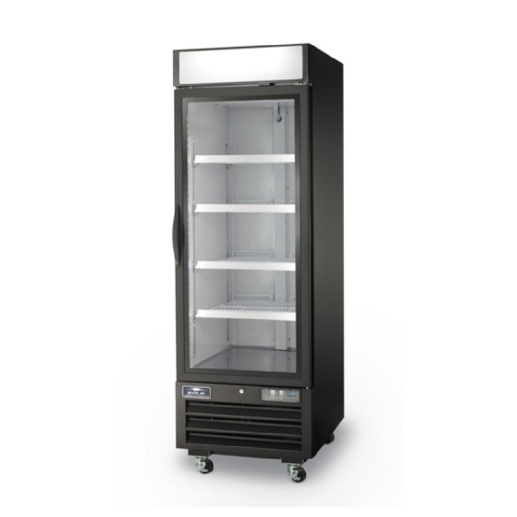 The Arctic Air AFGDM23 Freezer Merchandiser One-section is a versatile and efficient unit engineered to meet the rigorous demands of commercial environments. This merchandiser features a 27"W, 23.0 cu. ft. capacity, ideal for small to medium-sized retail spaces. Its electronic thermostat, coupled with a digital LED display, ensures precise temperature control within a range of -10°F to +10°F, making it suitable for preserving a wide variety of frozen goods. The merchandiser is designed with a single, heated glass paneled, right-hinged door framed in a sleek black powder-coated finish, which enhances visibility while maintaining energy efficiency. This door is self-closing and lockable, featuring a removable magnetic gasket for easy maintenance. Inside, the freezer is equipped with four adjustable white epoxy-coated wire shelves, each with a label support channel for clear product identification. An interior LED light and an LED back-lit display panel above the door ensure products are well-lit and attractively displayed. The unit's exterior is constructed of a durable powder-coated black material, while the interior boasts white aluminum walls and a high-grade coved corner stainless steel floor. Mobility is facilitated by four 5" casters, two of which are locking. The bottom mounted self-contained refrigeration system uses R290 Hydrocarbon refrigerant, delivering 2000 BTU/h rejected heated air gain, and runs on a 3/4 HP motor at 115v/60/1-ph with a NEMA 5-15P plug, 8.0 amps, and certifications from cETLus and ETL-Sanitation. This makes it a reliable choice for food service operators seeking both functionality and aesthetic appeal in their display solutions.