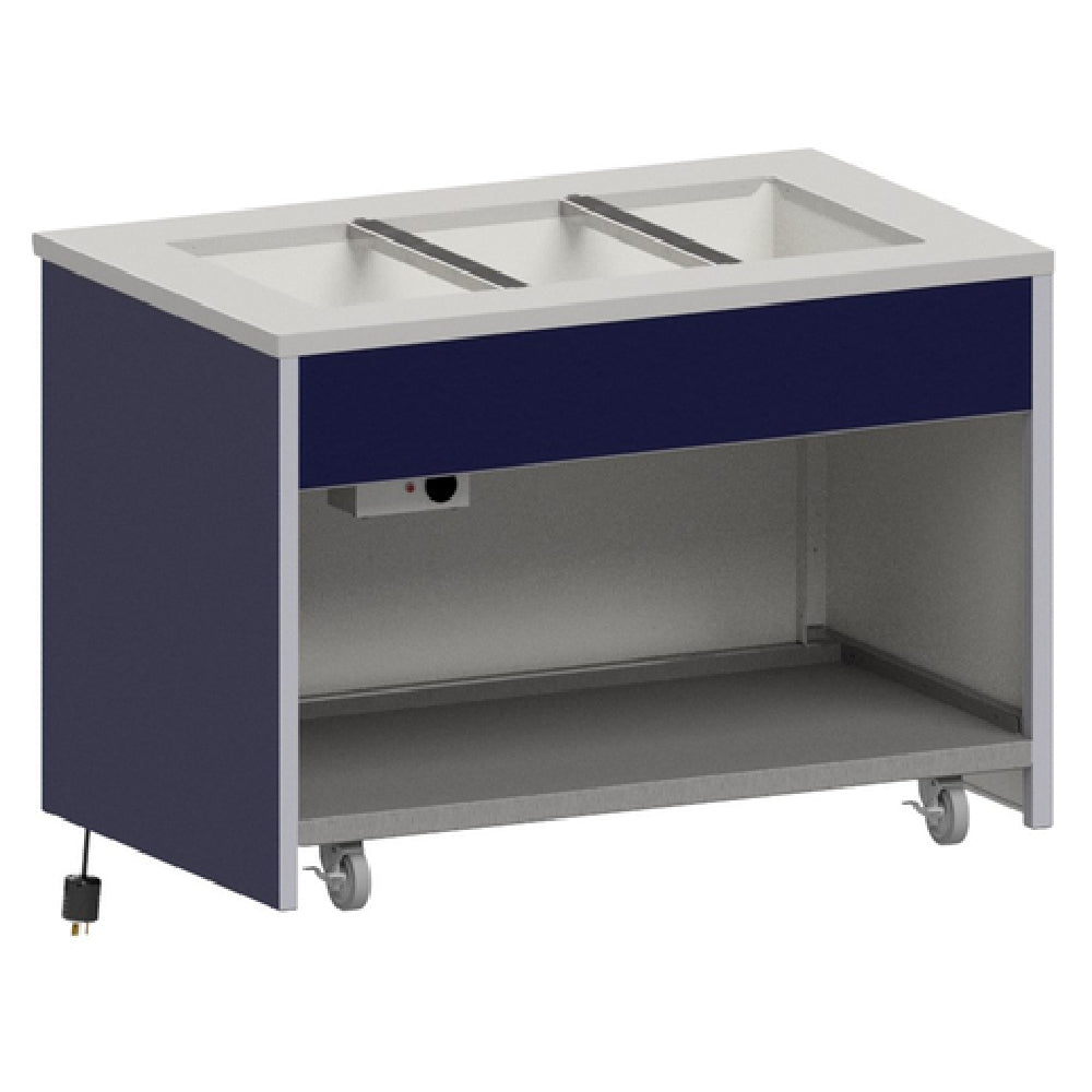 The Atlas Metal INFH-5 Mobile Hot Food Unit Electric 77-3/4"W is a versatile kitchen appliance designed to meet the demanding needs of food service environments. Featuring a bain-marie type setup, it accommodates both wet and dry heating methods, ensuring flexibility for various culinary applications. The unit boasts a significant pan capacity with space for five 12" x 20" pans, making it ideal for commercial kitchens requiring efficient food holding solutions. Constructed with a high-quality 16/304 stainless steel top and a durable stainless steel frame with laminate panels, this unit promises longevity and robust performance. Added convenience comes from its open cabinet base and a removable stainless steel undershelf, allowing for additional storage and easy cleaning. The inclusion of 4" swivel casters, two with brakes, facilitates mobility and secure placement within any kitchen layout. The thermostat control feature ensures precise temperature regulation, maintaining optimal food temperatures. UL EPH Classified, this mobile unit adheres to strict safety and sanitation standards, making it a reliable choice for restaurants, catering services, and institutional kitchens. Its combination of durability, mobility, and heating versatility positions the Atlas Metal INFH-5 as a valuable asset in food service operations.