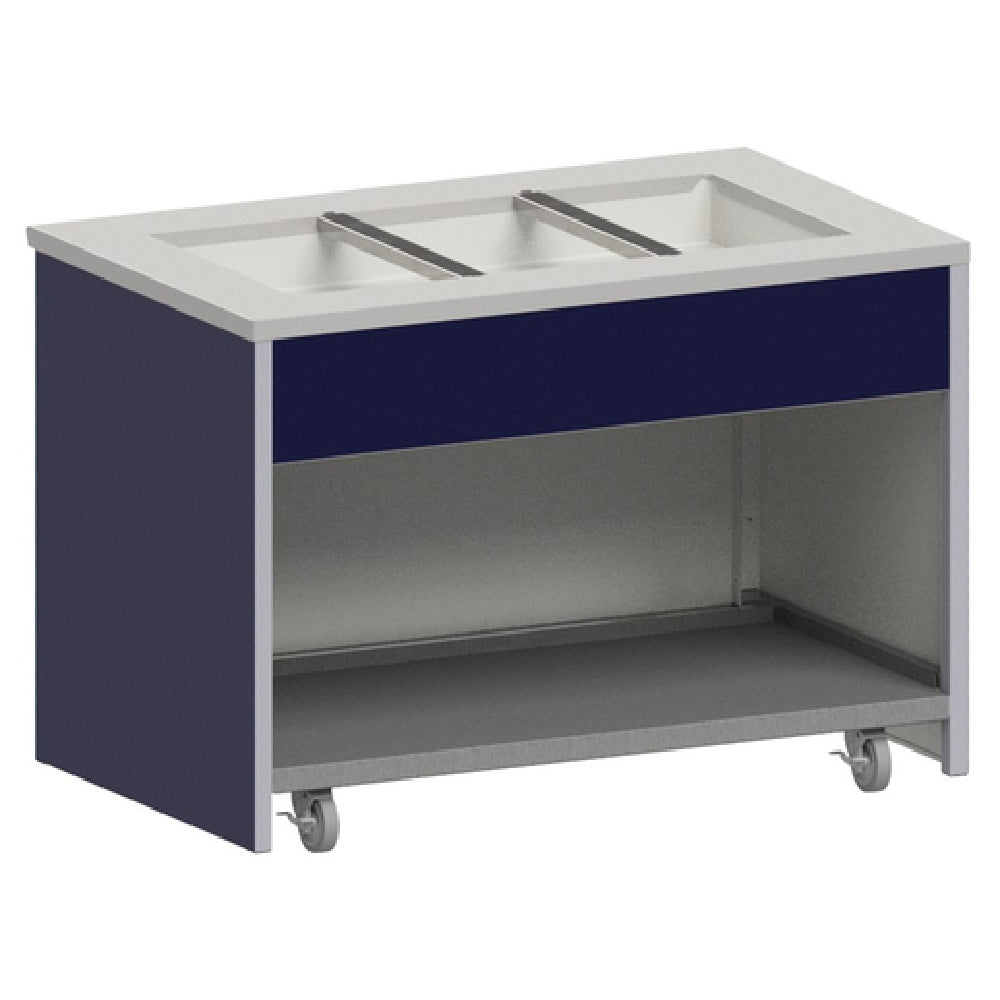 The Atlas Metal INFIC-5 Mobile Cold Food Unit Ice Cooled 77-3/4"W is a versatile and efficient solution for keeping food items chilled in a variety of settings. This unit boasts a generous 77-3/4-inch width with a capacity to accommodate five 12" x 20" pans, making it ideal for high-volume food service environments such as catering events, buffets, and cafeterias. Constructed with a durable 16/304 stainless steel top and a stainless steel frame complemented by laminate panels, this unit ensures longevity and easy cleaning. The inclusion of a stainless steel undershelf provides additional storage space, while the open cabinet base offers accessibility and organization. Equipped with 4-inch swivel casters, two of which have brakes, this mobile unit can be easily moved or securely stationed as needed. Classified under UL EPH standards, it meets stringent public health and safety requirements. Its ice-cooled system ensures that food remains at optimal temperatures without the need for electricity, making it an environmentally friendly choice. This product offers a practical and robust solution for foodservice operators seeking to maintain efficiency and hygiene in their cold food presentation and storage.
