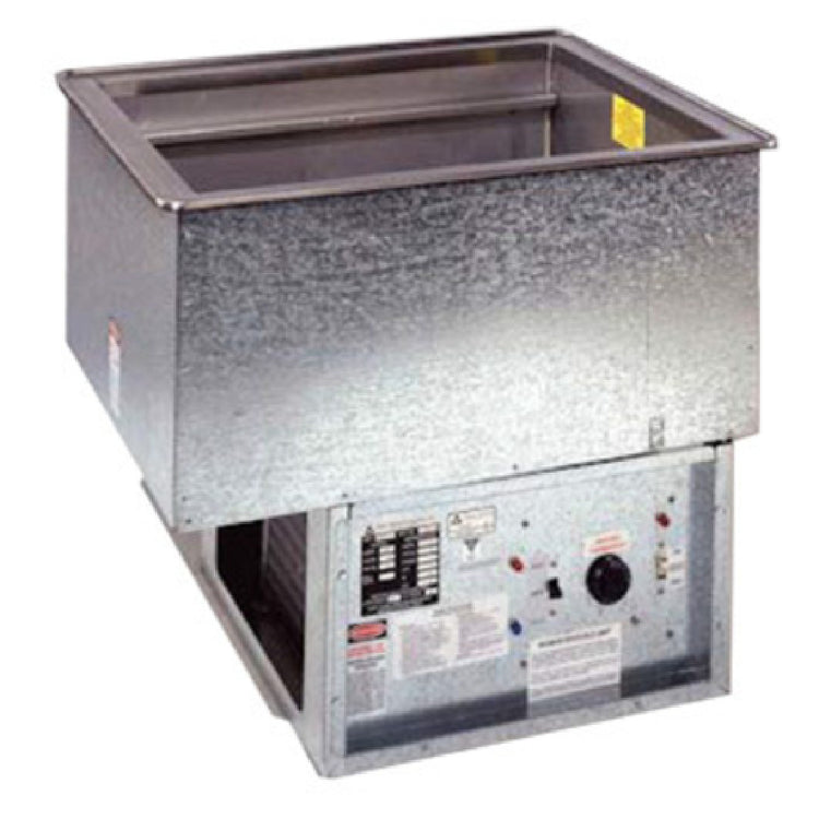 The Atlas Metal RM-HP-X-4 Hot/Cold Food Drop-In Unit is a versatile solution for commercial kitchens, designed to accommodate diverse culinary needs. Featuring a 4-pan size configuration, it holds four 12" x 20" pans seamlessly within its 18/304 stainless steel top and liner. The 3" recess ensures stability and secure storage of the pans. Notably, the unit is equipped with an immersion-type heating element, optimizing thermal efficiency for both hot and cold applications. The absence of an integrated compressor emphasizes its remote refrigeration capability, allowing for greater flexibility in kitchen setups. Inclusion of the RSHP-X remote control panel enhances operational convenience, while the insulated pan with a robust 22-gauge galvanized outer case ensures durability and thermal retention. Precision is further supported by a digital thermostat expansion valve bracket and a filter dryer, complemented by a 3/4" drain with strainer for efficient maintenance. With precise dimensions requiring a 57-3/4"W x 24-1/2"D cutout, the unit adheres to NSF 169 and UL standards, underscoring its compliance with rigorous safety and health guidelines. The Atlas Metal RM-HP-X-4 is an essential asset for food service establishments seeking reliable and efficient food storage and heating solutions.