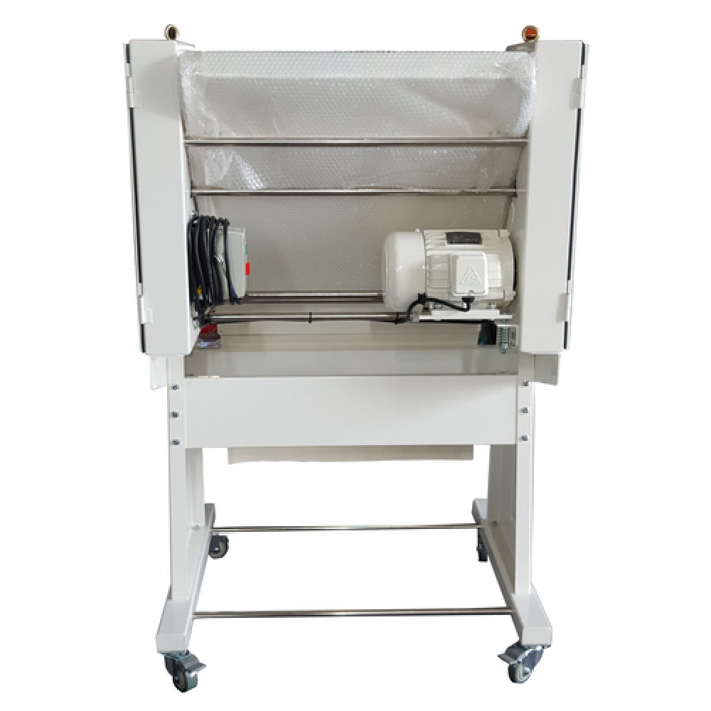 The BakeMax BMFBM01 French Bread Moulder is an advanced piece of equipment tailored for high-efficiency baking environments, capable of processing dough weights ranging from 50 to 1000 grams (1.76 - 35.27 oz.). With the ability to produce up to 3000 pieces per hour, this moulder significantly enhances productivity for commercial bakeries, catering services, and large-scale food operations. The adjustable molding thickness indicator allows users to customize the bread shaping process to meet specific aesthetic and texture requirements, making it versatile for various types of French bread. Safety is a priority, with built-in overload protection ensuring secure operation. The moulder is mounted on a stand with casters, offering mobility and ease of repositioning within a workspace. Powered by a robust 1500-watt motor, it operates on a 220v/60/3-ph electrical system, drawing 7.0 amps and requiring hard wiring for installation. Complying with CE standards, the BakeMax BMFBM01 French Bread Moulder is designed for durability and reliability, making it a valuable asset in any professional baking setting where efficiency and consistency are paramount.