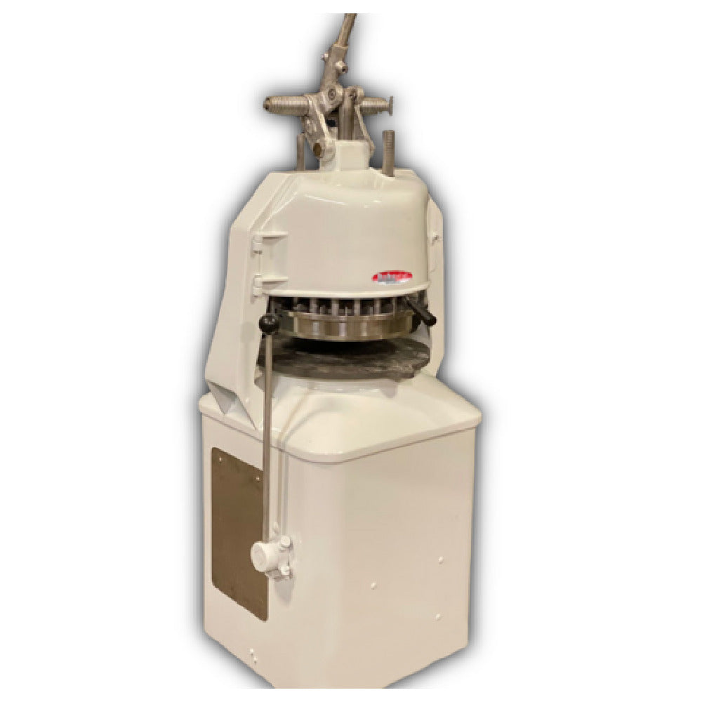 The BakeMax BMJN001 Bun/Dough Divider Rounder is a semi-automatic machine that excels in precision and efficiency within the bakery industry. Designed specifically for high-volume production, this model handles a divider range of 1 oz. to 2.75 oz., accommodating up to 36 pieces at a time and delivering an impressive output of up to 5000 pieces per hour. Its removable heads and manual motor start system ensure flexibility and user control, while the stainless steel separating blades guarantee durability and hygiene. The inclusion of two rounding plates provides versatility for various dough types and weights, further emphasized by its adjustable settings for different dough weights. Safety and quality are paramount; thus, it is both UL and NSF certified, meeting rigorous industry standards. Made in the USA, the BakeMax BMJN001 is a reliable choice for bakeries seeking to enhance productivity with a focus on precision and consistency. This product is particularly suited for businesses ranging from small artisanal bakeries to large industrial operations, due to its adaptable capacity and robust construction.