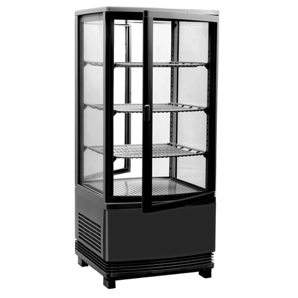 The BakeMax BMRCD02 Titan Series Refrigerated Display Case is a versatile countertop unit designed for optimal visibility and accessibility in food service environments. Featuring convenient pass-thru double doors, this display case enhances customer interaction and service efficiency. It operates within a precise temperature range of 32-54°F, controlled by a digital temperature system, ensuring ideal conditions for preserving a variety of perishable items. The unit is equipped with automatic defrost capabilities, reducing maintenance demands. Internally, it houses three adjustable chrome-plated shelves, providing flexible storage options for products of various sizes. Illumination is provided by energy-efficient LED lighting, which enhances product visibility while minimizing heat output. The BakeMax BMRCD02's design includes four double glass side panels, offering a panoramic view from any angle. Utilizing R290 refrigerant, a more environmentally friendly option, it aligns with current sustainability standards. Operating at 180 watts and requiring a standard 110v/60/1-ph connection, it is fitted with a NEMA 5-15P plug. The display case meets cQPSus, CE, and RoHS standards, underlining its compliance with international safety and environmental regulations. This unit is ideal for bakeries, cafes, and other food service establishments seeking an efficient and attractive solution for refrigerated product display.