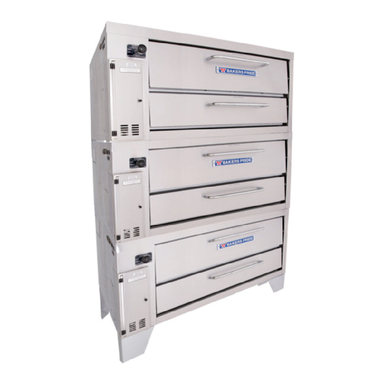 The Bakers Pride 353_LP Super Deck Series Pizza Deck Oven is a high-performance gas oven designed specifically for the rigorous demands of professional kitchens. It boasts a 45-inch wide by 34-1/2-inch deep bake deck, providing ample space for baking multiple pizzas simultaneously. This model features three 8-inch high decks, each equipped with its own chamber, allowing for efficient cooking of different pizza styles or recipes. The throttling thermostat offers a wide temperature range of 300°F to 650°F, accommodating a variety of baking requirements. Constructed with a durable stainless steel exterior, this pizza deck oven ensures longevity and ease of cleaning. The unit stands on 6-inch painted legs, providing stability and support. With a significant output of 210,000 BTUs, it delivers powerful heating capabilities to meet high-volume demands. The Bakers Pride 353_LP is certified by CE, NSF, CSA Star, and CSA Flame, ensuring compliance with industry standards for safety and performance. This oven is an exceptional choice for pizzerias, bakeries, and other food service establishments seeking a reliable and efficient solution to enhance their pizza production and overall kitchen operations. Its robust design and technical features make it a valuable asset in any commercial kitchen setting.