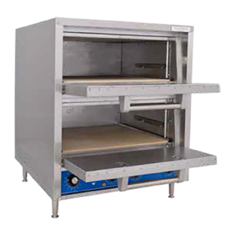 The Bakers Pride P48-BL_208 HearthBake Series Oven Countertop Electric is a highly specialized appliance designed for the precise needs of pizza and pretzel baking. This brick-lined oven features two compartments, each with a 7-inch deck height, providing ample space for culinary creations. The oven includes two removable ceramic hearth decks, measuring 20-3/4 inches by 20-3/4 inches, which are ideal for achieving that perfect crispness in baked goods. With a thermostat capable of reaching up to 550°F, it offers precise temperature control. A mechanical timer adds convenience to the cooking process, ensuring that baking times are adhered to with accuracy. The exterior is crafted from durable stainless steel, offering longevity and ease of cleaning. For versatile operation, the oven includes a brick lined conversion kit, enhancing its baking capabilities. Operating at 4,300 watts, this electric oven is UL EPH Classified, cULus, and CE certified, ensuring compliance with safety standards. The Bakers Pride P48-BL_208 is perfectly suited for professional kitchens seeking reliability and performance in a compact, countertop form factor.