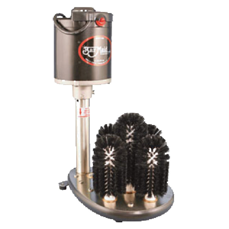 The Bar Maid/Glass Pro A-200 Bar Maid® Glass Washer Upright Electric is a high-performance appliance engineered for efficiency and durability in the hospitality industry. This model boasts a 1/3 horsepower motor that operates in a continuous run mode, ensuring consistent and thorough cleaning. The device features five brushes, including four 6-inch brushes and one 7-1/2-inch brush, designed to accommodate various glass sizes and shapes, making it versatile for use in bars, restaurants, and hotels. The glass washer is equipped with an enclosed motor and sealed lower bearings, which, along with a splashguard canopy, enhance its longevity and safeguard the motor from water and debris. Constructed from stainless steel, the A-200 is both sturdy and resistant to wear, making it a reliable choice for high-volume environments. Operating at 115 volts, 60 hertz, and single-phase power, the unit is compatible with standard electrical systems and comes with a GFI plug for added safety. Certified by ETLus, this glass washer meets rigorous standards for safety and sanitation. It is proudly made in the USA and includes a two-year warranty with registration, providing peace of mind and assurance of quality for professional establishments seeking a dependable glass-washing solution.